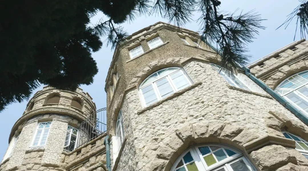 花石楼是30年代的海边欧式建筑,风格有点罗马、有点希腊,感觉也是一个“融合怪”(我就是羡慕)。它最初是沙俄贵族涞比池的私人别墅,在1938年至1945年间是英国驻青岛总领事馆的官邸,再后来蒋介石住过,陈毅也住过。Anyway,历史故事我也不喜欢了解太多,我就来看房子的。