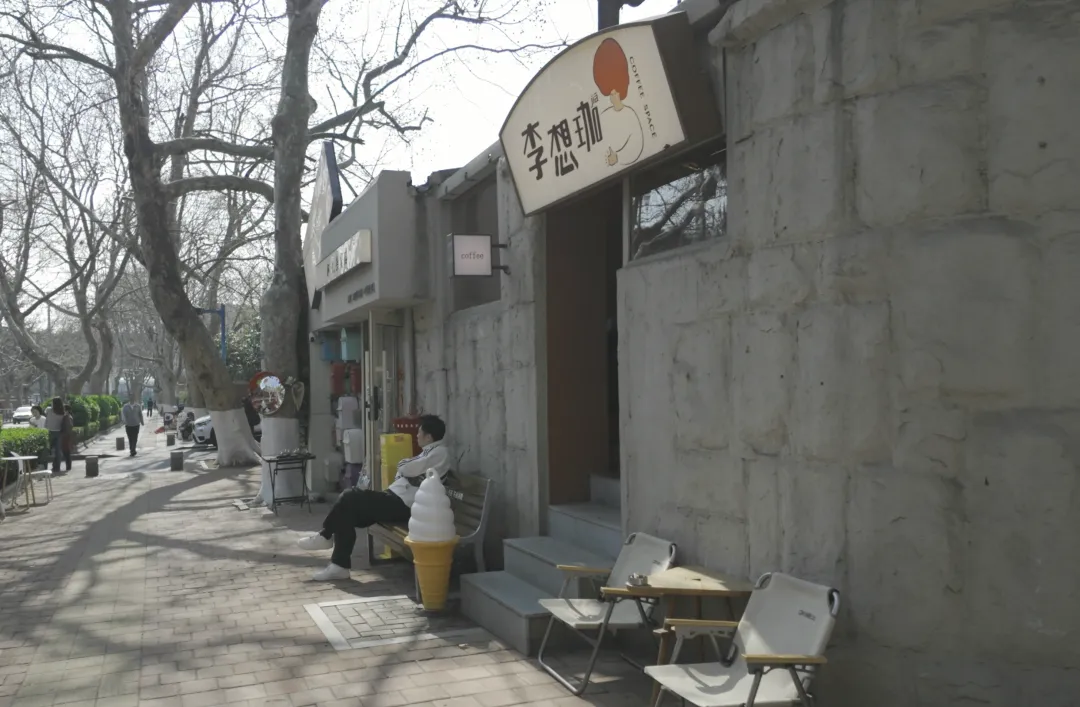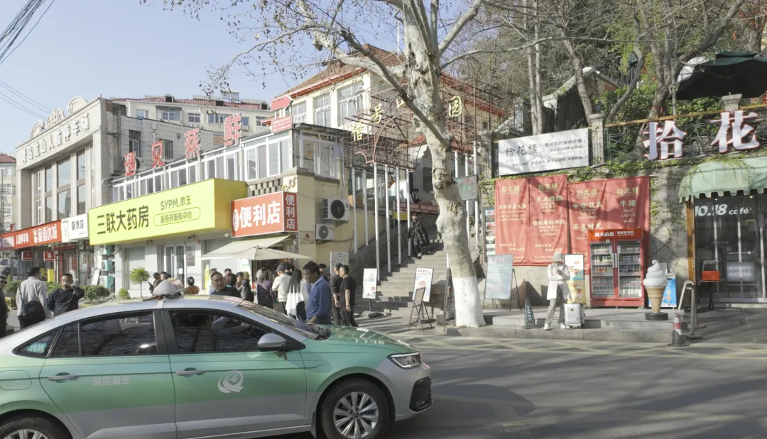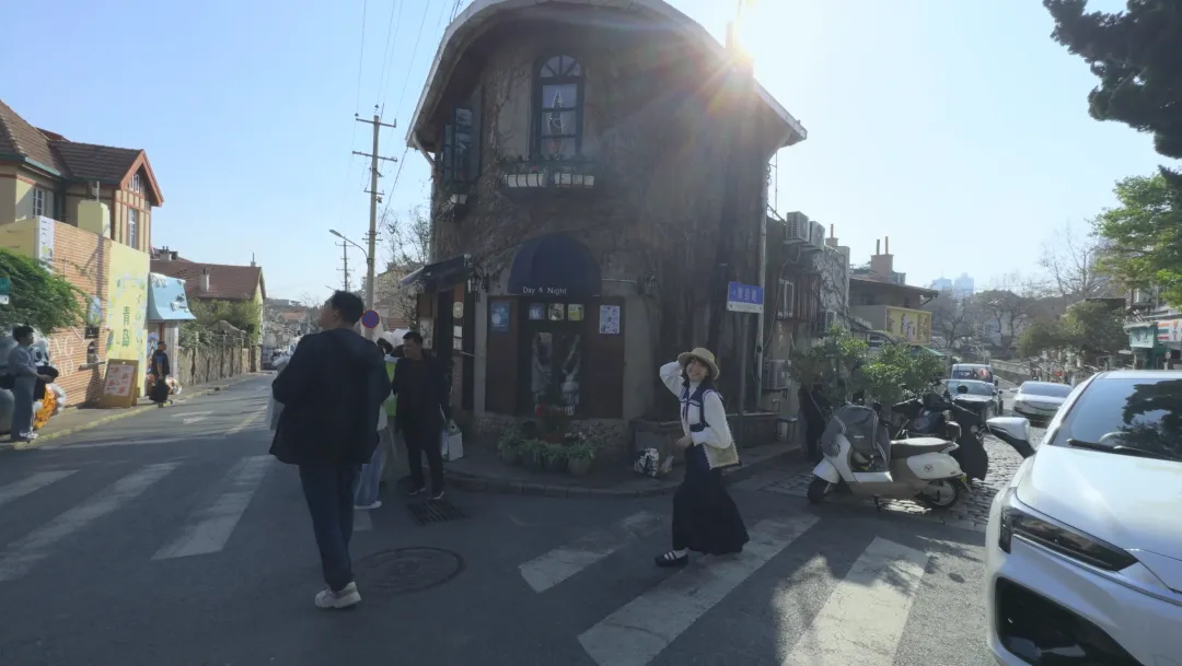 这一段怎么说呢,一路都有野生摄影师拿着pad揽客,几个网红点也是要排队拍照。黄县路路口有一家Reef咖啡店,外墙看着不错,但评分不高。对面是漫画感的不舍昼夜咖啡店,人很多,而且下午大逆光,要拍照也很困难,适合肉眼看看。