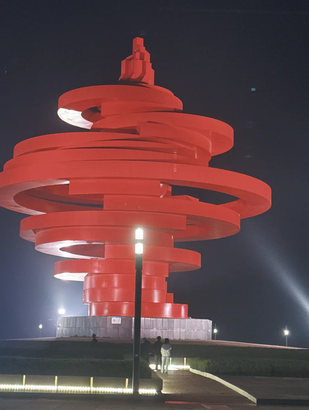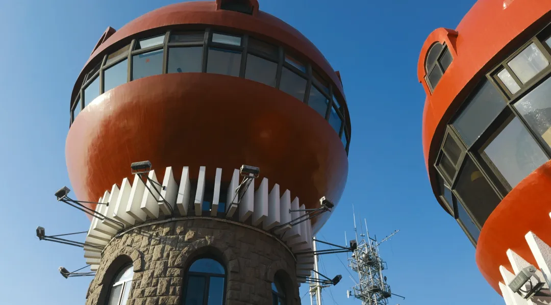 山顶三个红色蘑菇楼,其中一个是360度旋转观景楼,可以坐在窗边看全景,转一圈大概20-30分钟。这个需要10元门票,它5点准时下班,所以我没能上去……