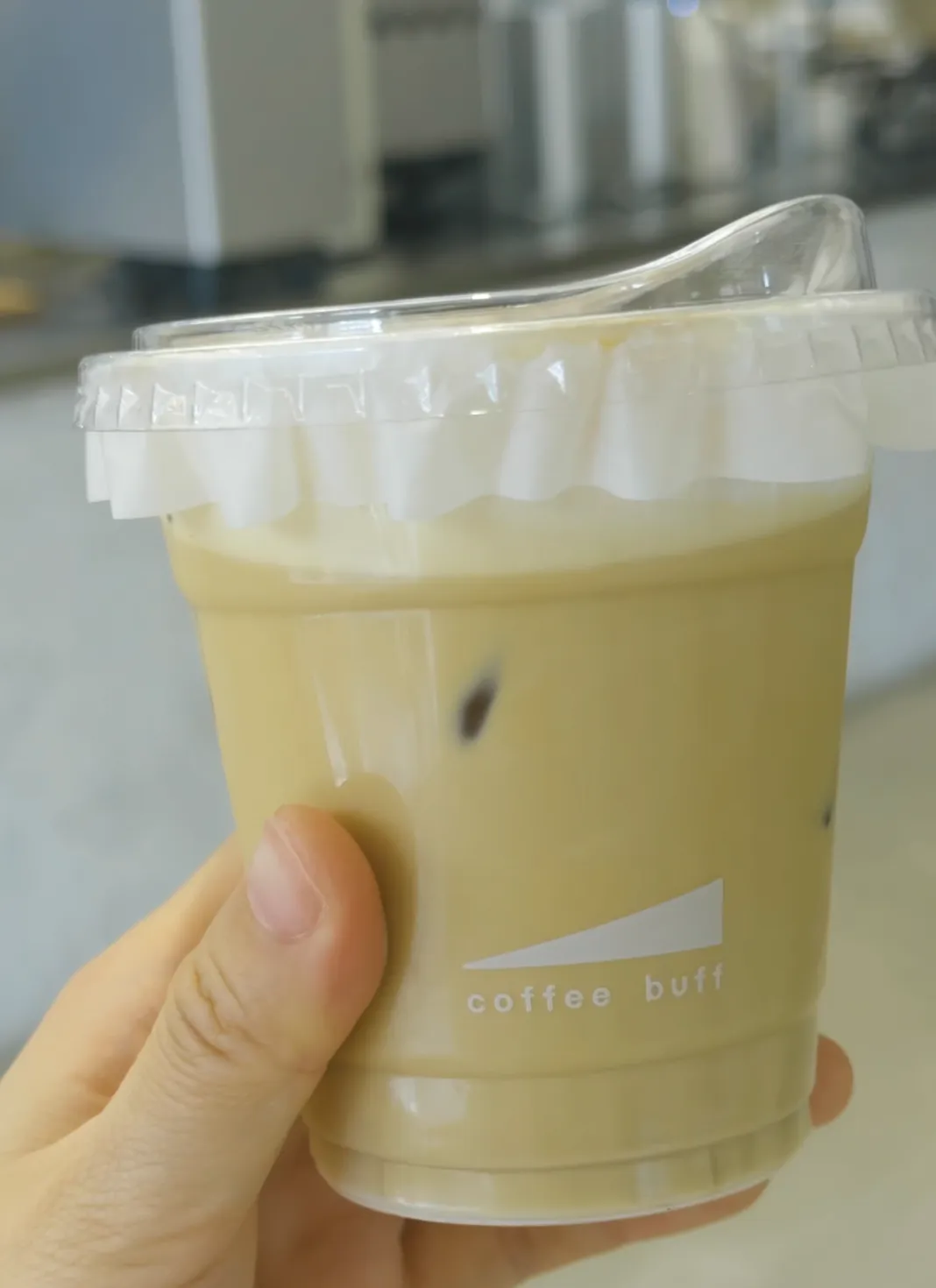 Coffee Buff本来在上海,创始人李震是2020年世界咖啡冲煮大赛中国区冠军,很牛了。现在上海店关掉了,只有青岛这一家。周六店里人多,我点了一杯拿铁外带,没法好好喝有点遗憾。带了包豆子回家。