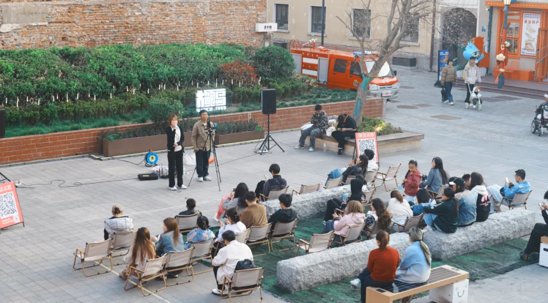 这边也有很多人唱歌,这真是青岛的一个特色。