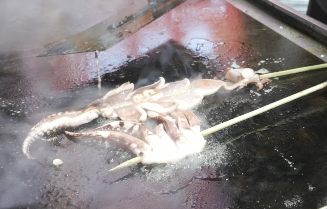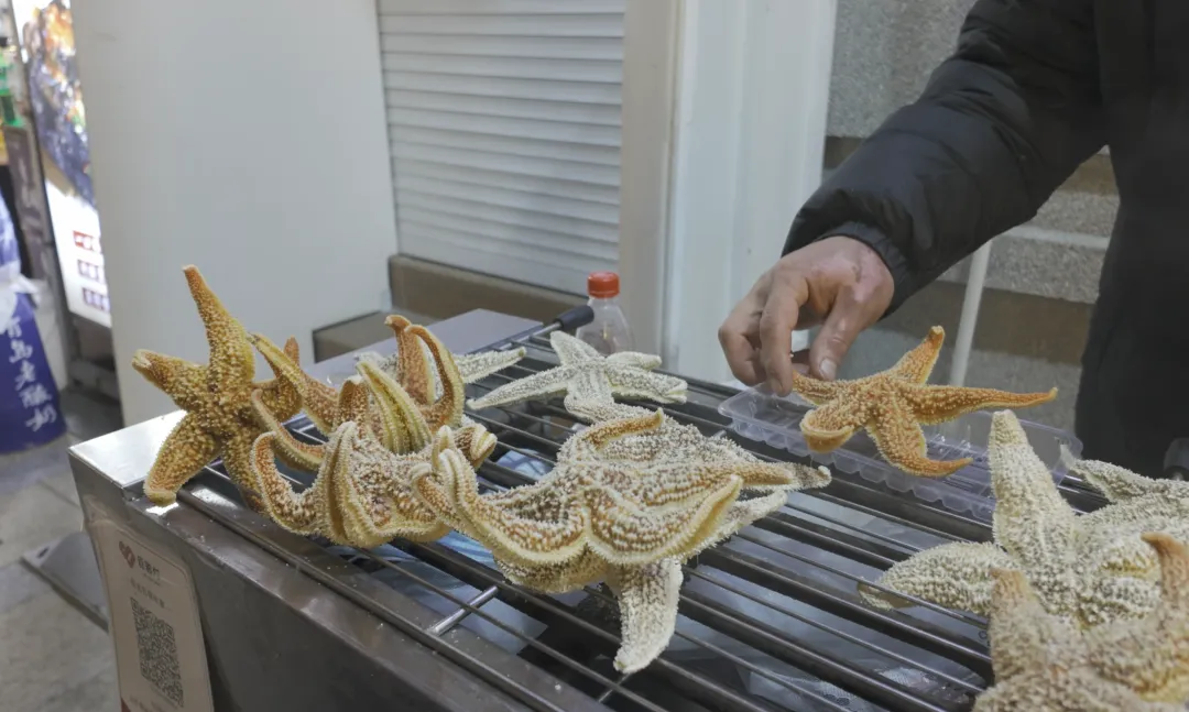 听完歌顺利吃上了烤海星、烤鱿鱼和烤臭豆腐,完美一天 !