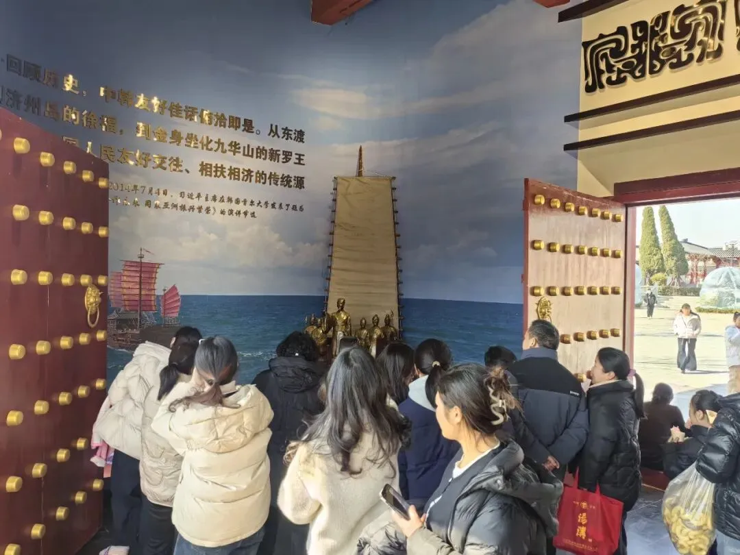 走进徐福文化展示馆,就如同打开了一本生动的历史画卷。现代科技手段的运用,让历史变得不再枯燥乏味。游客可以通过电子屏观看精彩的视频资料,更直观地了解徐福东渡的过程,深入探究历史细节。实物陈列则让游客能够亲眼看到与徐福相关的文物,仿佛触摸到了历史的脉络。春节期间的超高人气,也说明越来越多的人对徐福文化产生了浓厚的兴趣,想要通过这个展示馆来揭开那段神秘的历史。