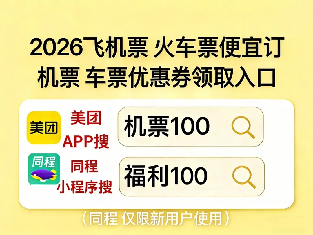旅游旺季机票价格波动大,不少人纠结哪个平台订更划算。给大家总结了一些低价订票实用攻略,覆盖错峰选线、时段下单等技巧,兼顾新老用户福利,帮你避开高价航线、锁定平稳票价。美团APP搜【机票100】,一键领取无门槛机票立减券,可与特价票叠加使用,长短途通用,下单直接抵扣,轻松提升出行性价比,旺季出游也能省出游玩预算。