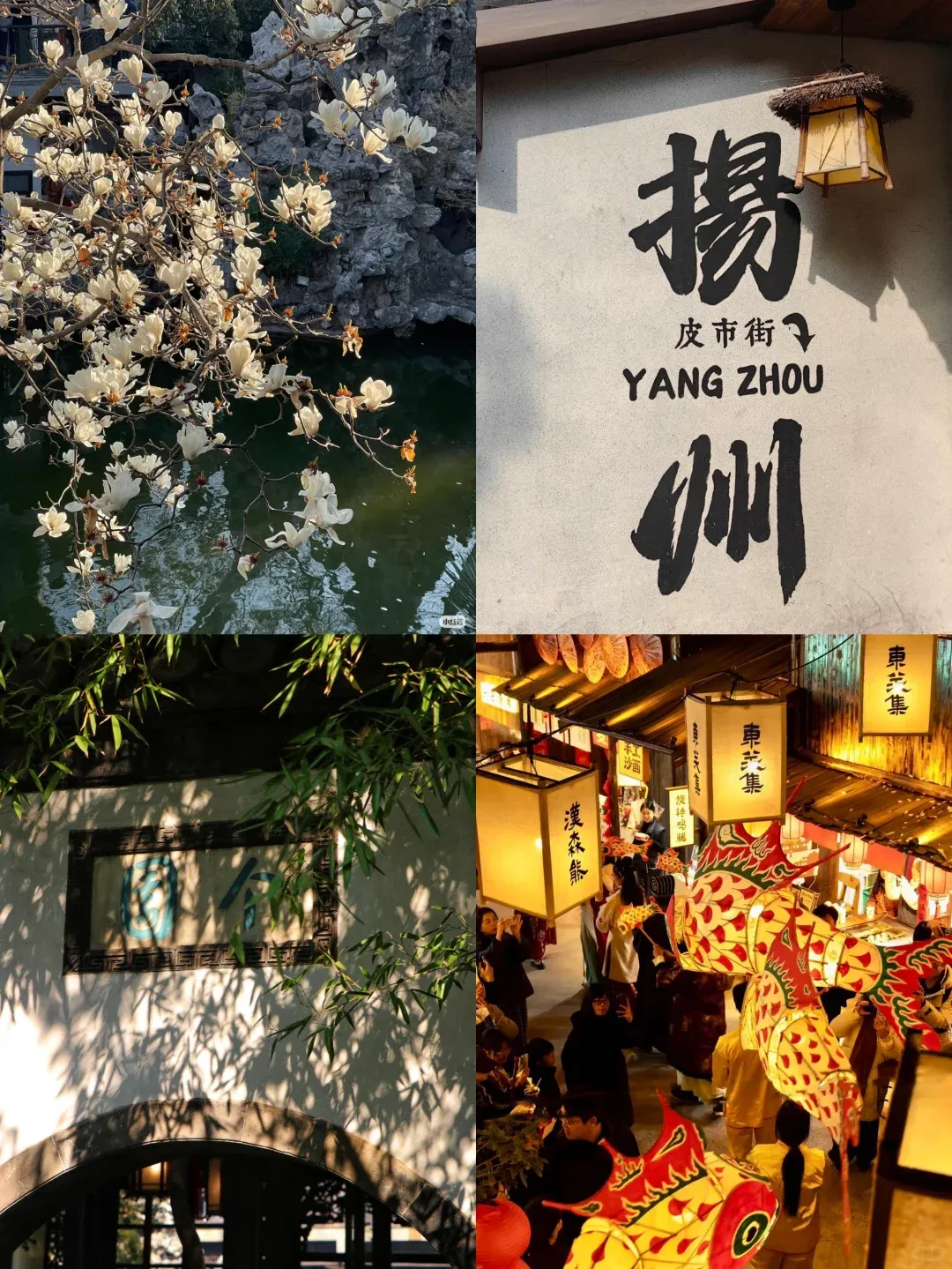 作者:Freyr麦浪 四月的扬州真的把江南浪漫焊死了,不愧是李白都推荐的去扬州最好的季节~ 📜整理了动线超顺、景点全覆盖、拍照出片的保姆级路线 📝第一次来直接抄作业,不绕路不踩雷! Day1️⃣盐商园林| 动线:个园→彩衣街→何园→皮市街 📍个园:中国四大名园,四季假山+青竹,一步一景 📍彩衣街:超多扬州小吃美食集合地,精致又好吃,大饱口福(眼福) 📍何园:晚清第一园,1500米复道回廊,航拍/仰拍都封神,千万不要错过三月的白玉兰,满树花开是专属何园的浪漫 📍皮市街:文艺小店+咖啡+扬大酸奶,小众治愈