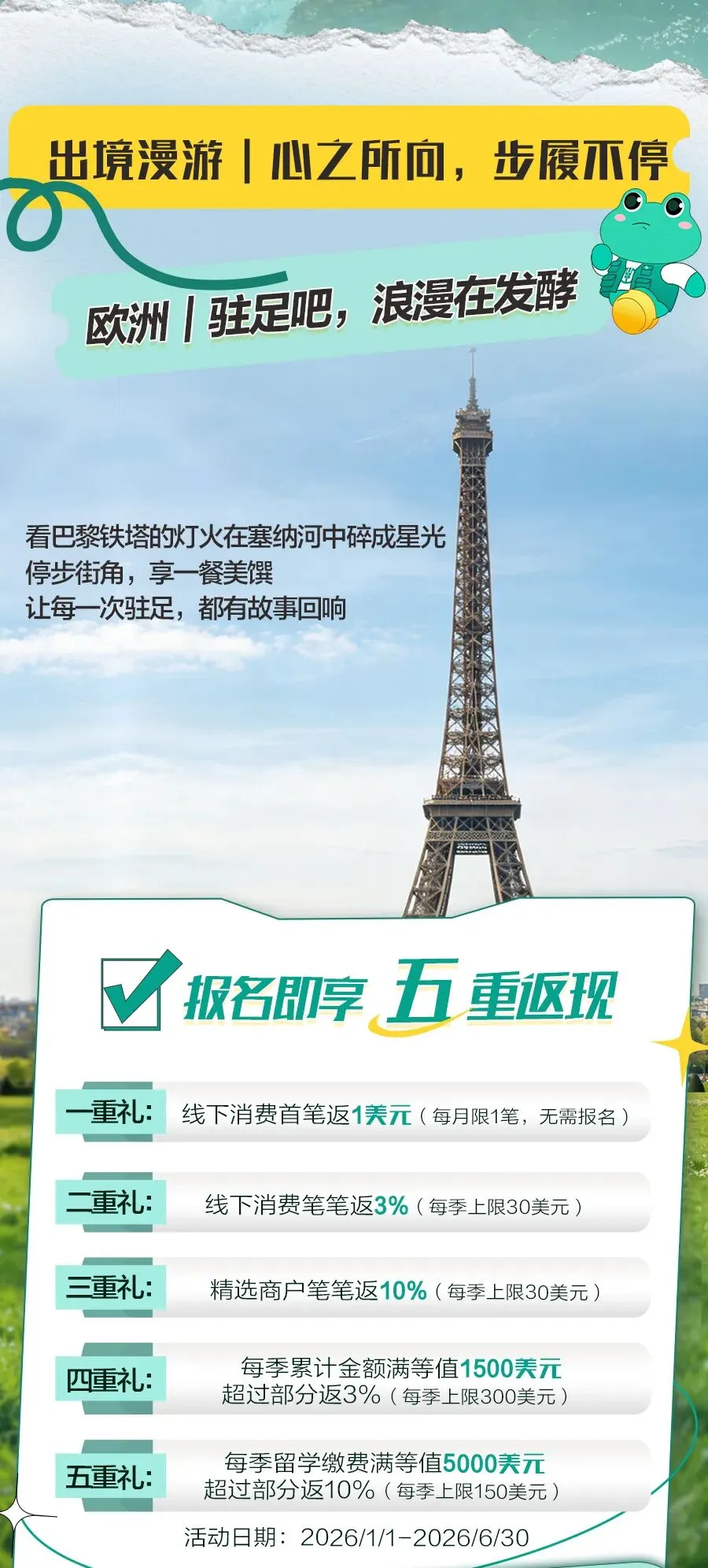 您现在的位置是:首页 > 国内旅游目的推荐 > 正文 国内旅游目的推荐 五一出境|欧美旅行通关攻略,农行Visa卡五重返现至高513美元 admin2026年04月22日 09:23:22国内旅游目的推荐2 五一出境|欧美旅行通关攻略,农行Visa卡五重返现至高513美元 转载请说明来源于"旅荐网",部分内容转载自网络,如有侵权请联系qlwl@foxmail.com删除 本文地址:https://www.15386.cn/post/157232.html 上一篇 印度旅行必看!手机网络全攻略,选对SIM卡一路畅通 下一篇 【旅游】新疆穷游怎么玩?人均3000避坑指南请收好 相关文章 【旅游】新疆穷游怎么玩?人均3000避坑指南请收好 印度旅行必看!手机网络全攻略,选对SIM卡一路畅通 福州的旅游住宿攻略 贵阳三天深度旅游攻略(含打卡点、景区、交通、门票,新手友好) 五一新疆旅行攻略|必打卡景点+避雷指南 J人花24h做的三亚旅游攻略已next level 平洲湾火了——佛山平洲湾网红打卡点旅游攻略 4-5月计划去北京旅游的存一下,很难找全的 五一前南方7省遭强降雨,出游计划或被大幅改写 退休三年,他悄悄取消了所有旅游计划,邻居追问后才说出实情… 发表评论 取消回复 评论列表 这篇文章还没有收到评论,赶紧来抢沙发吧~