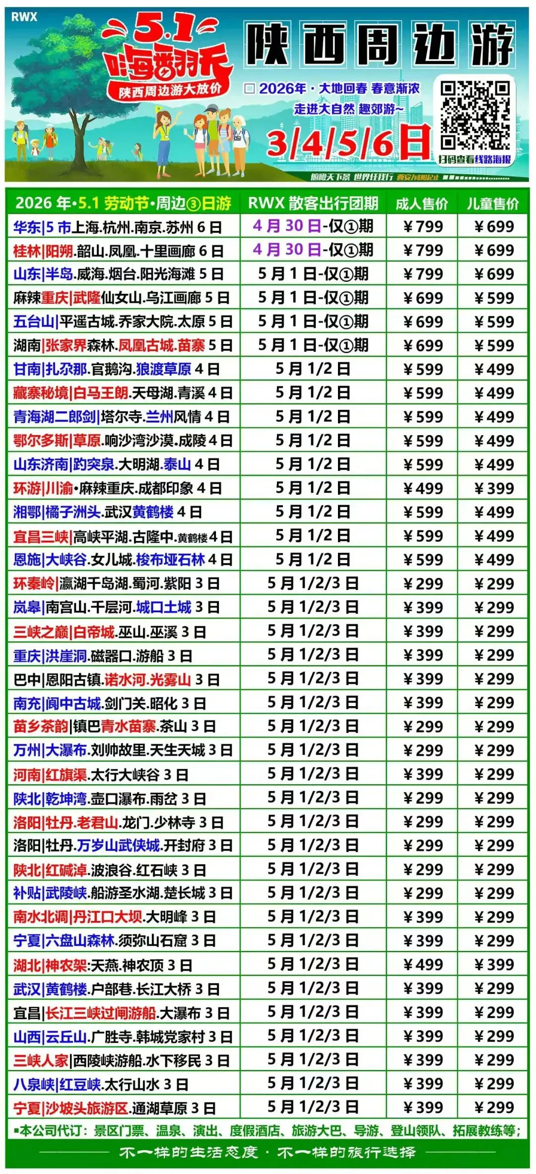 5.1假期‼陕西周边游计划~ ✅古城·峡谷·云海·森林·草原~ 🅾就近上车·免费乘坐接驳车 ✅扫码查看海报•获得行程~ |