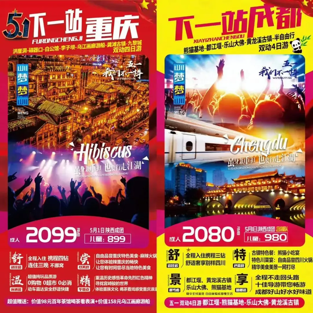 五一不请假系列‼ 🔥🔥爆款推荐🔥🔥 🚩【下一站甘南】💰1780元 🚩【五星九寨】💰1880元 🚩【来喽宁夏】💰1899 元 🚩【宁夏摩洛哥】💰1999 元 🚩【青海蒂芙尼】💰1980元 🚩【下一站成都】💰2080元 🚩【下一站重庆】💰2099元 不定时涨价,欲报从速 |