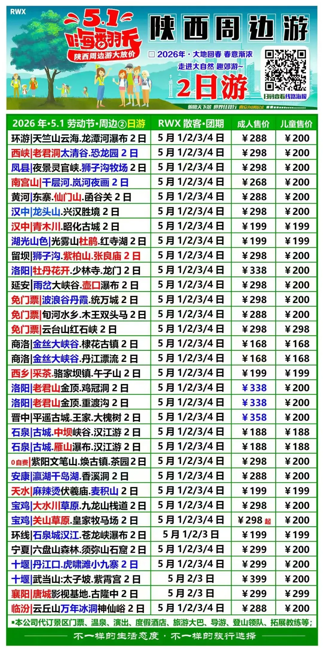 【五一】5.1假期旅游计划 |西安周边游|甘南|青海|成都|重庆|宁夏|九寨...