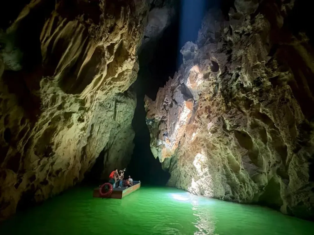乘船游览水上秘境,全程无需徒步,轻松又惬意!盘阳河穿洞而过,洞内三明三暗,光影变幻,半小时体验“三天三夜”的奇妙轮回,天然钟乳石在光影中宛若水墨画,静谧又梦幻,完全是大自然的浪漫馈赠。