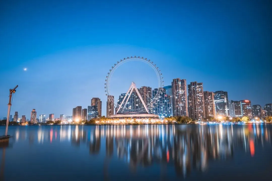 吃过晚饭后,可以打车到晋安湖公园!感受一下湖景夜景,还有福州之眼摩天轮。在公园内找一处茶摊,坐着喝喝福州的茉莉花茶,吹着晚风,感受独属于福州的静逸。