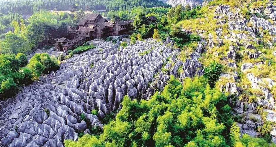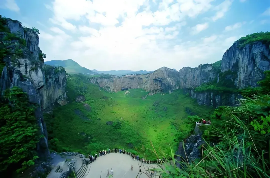 该景点位于宜宾市兴文县,是世界地质公园,以“地表石海、地下溶洞、天坑”三绝共生的喀斯特地貌奇观闻名,是中国著名的“喀斯特地貌博物馆”。