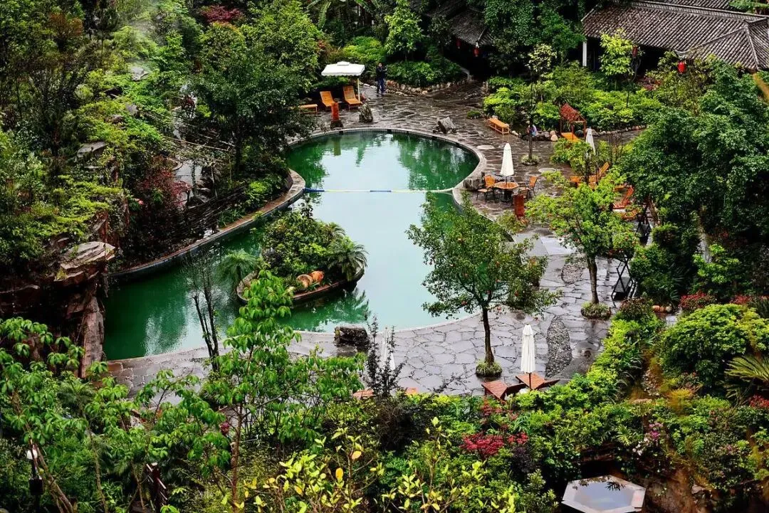 位于宜宾市水富市邵女坪社区(距宜宾市区约40分钟车程),地处高峡平湖旁,一面依山、三面环水,森林覆盖率达70%以上,将二十多个各类温泉泡池分布在天然氧吧中,既有牛奶泡池、当归泡池等功能泡池,也有室内迷你泡池,夏季也能享受清凉泡汤体验,环境清幽,适合康养休闲。