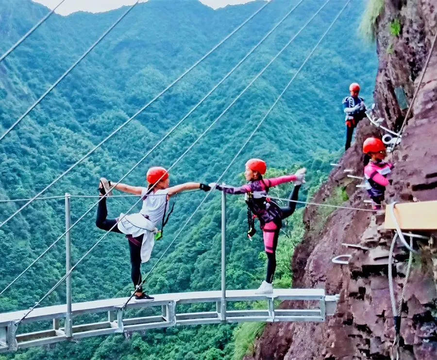 地点:大觉山滑翔伞、飞拉达、大觉古镇、南天门(一份自然的美景与人文的氛围,勾勒出古镇的完美,飞翔于天际的自由和刺激,这里有原生态的民俗、古老的传承,激活古镇活力)