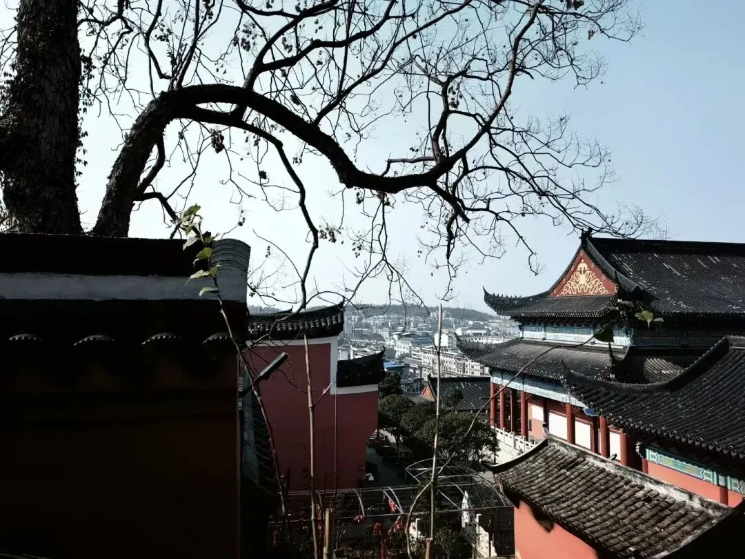 继续前行,便到了文庙与武庙。文庙供奉孔子,武庙祭祀关羽,一文一武,一东一西,遥相呼应。站在东山之巅俯瞰,零陵古城尽收眼底:潇水如练,绕城而过;古城墙蜿蜒曲折,青瓦白墙的民居错落有致。春日的阳光洒下来,整个古城仿佛镀上了一层温柔的金色。柳宗元当年是否也曾登临此处,望着这片土地写下“春风无限潇湘意”的千古名句?我想是的。