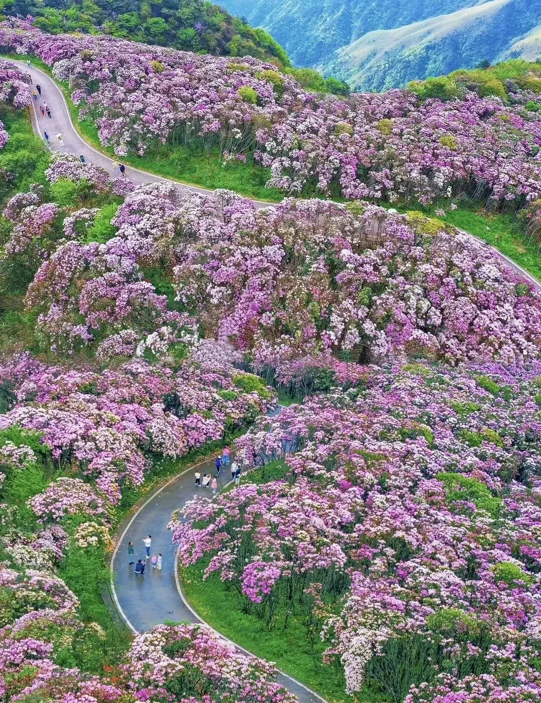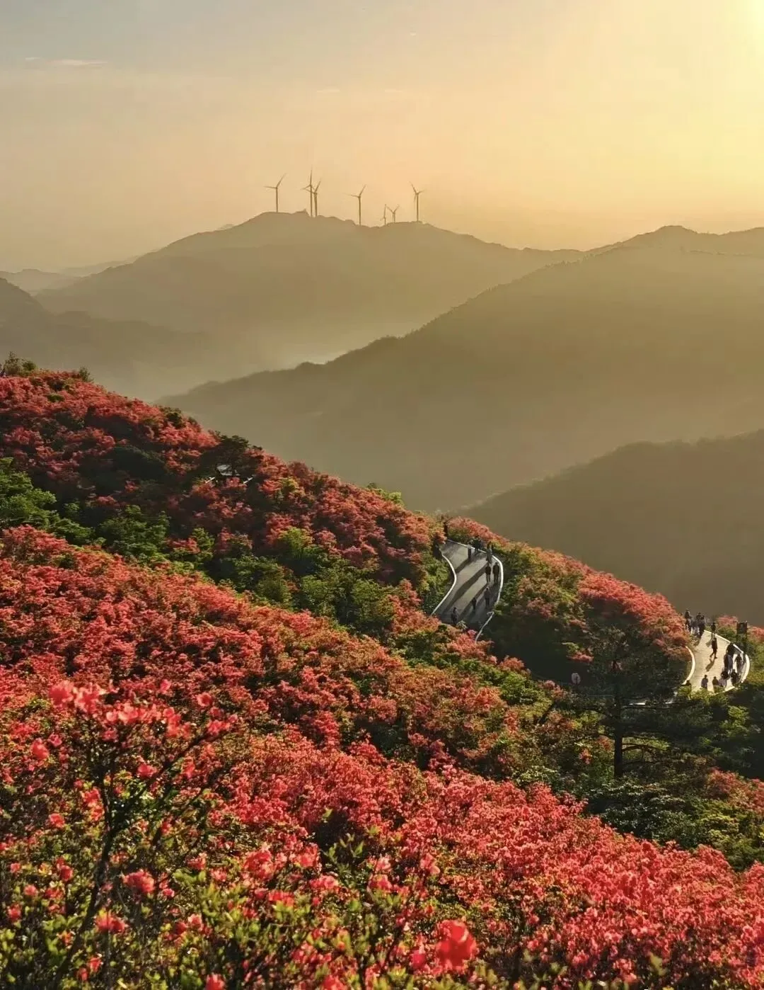 第三天,去阳明山国家森林公园。4月下旬至5月上旬,正是阳明山最惊艳的时刻——十万亩野生映山红即将迎来盛花期!作为中国最大的野生杜鹃基地,漫山遍野的映山红如万里红绸铺展在山巅,色彩艳丽,热烈奔放。漫步在万寿寺至微波台的步道上,两侧映山红肆意绽放,与千年古刹的禅意相融,堪称视觉盛宴。云锦杜鹃也将持续绽放至5月初,粉紫色的花瓣晶莹华贵,云雾缠绕间灿若云霞,曾入选新华社年度美景挂历。门票约60元,永州市区自驾需2小时到达阳明山杜鹃花海,根据个人时间合理安排行程。中午在阳明山附近的农家乐尝一顿永州血鸭,配上新鲜野菜,现采现做,地道湘味瞬间治愈爬山的疲惫。傍晚返回零陵古城住宿。