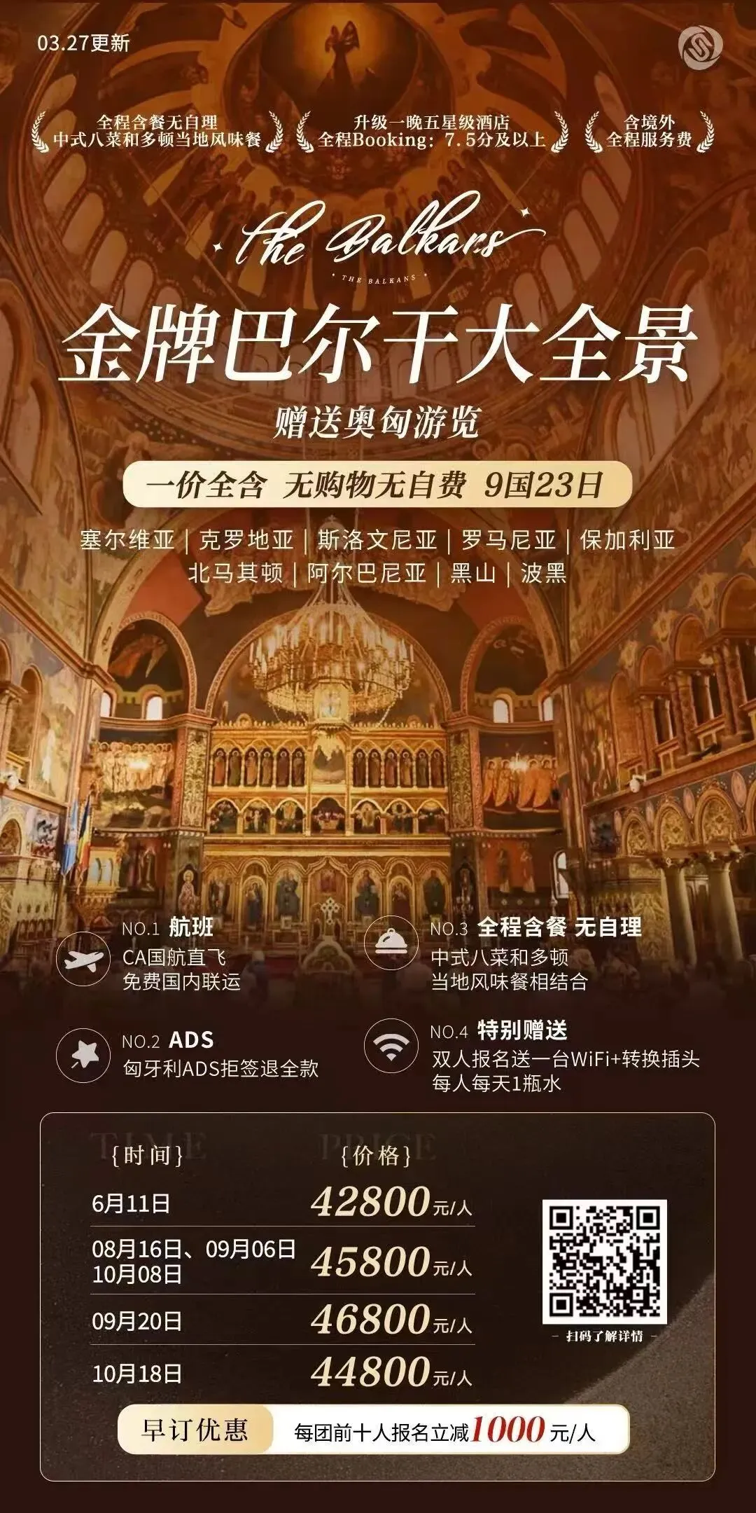 【金牌东欧】一价全含 巴尔干大全景 9国 23日