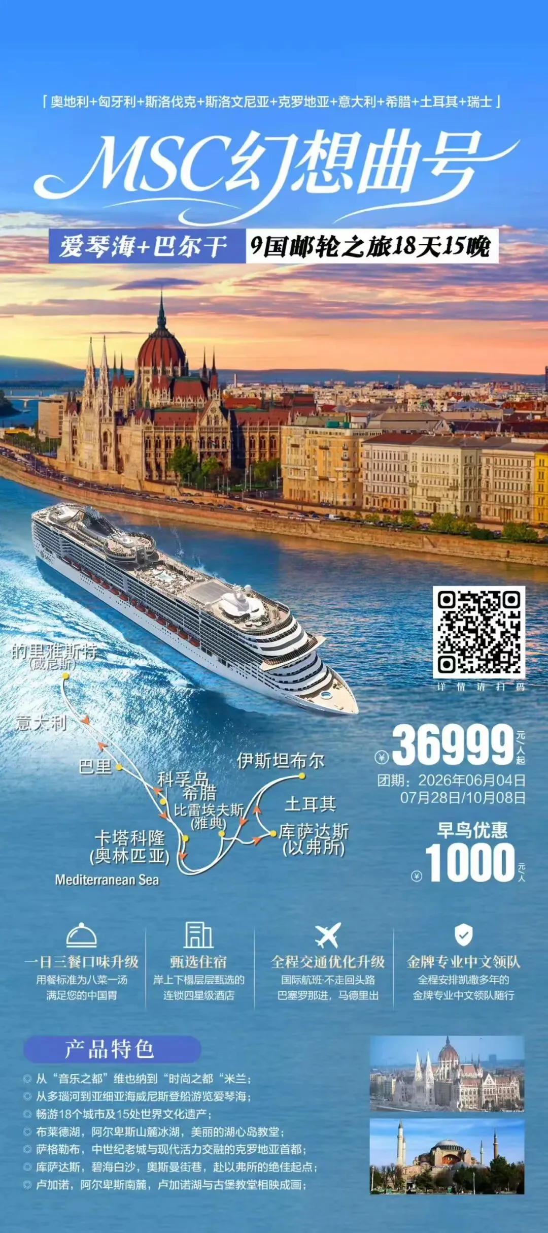 【MSC幻想曲号】爱琴海+巴尔干9国邮轮之旅18天15晚