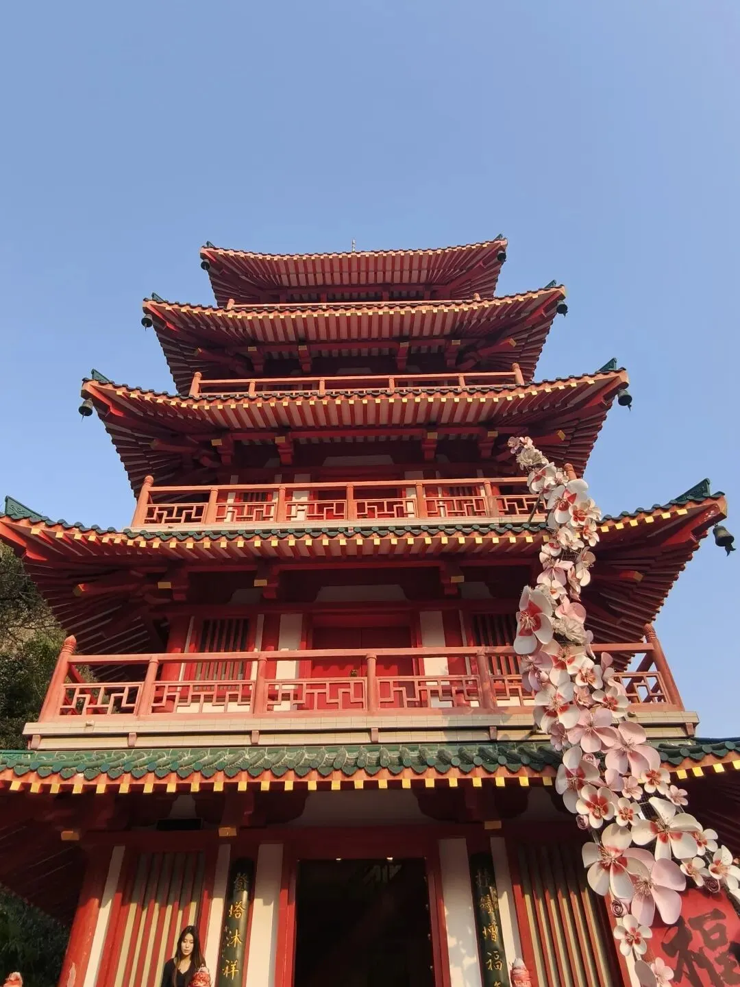 下山后直奔五福塔,五层古塔造型精致,塔内可祈福许愿,挂上祈福牌、敲响平安钟,为家人朋友祈求安康顺遂,塔上风铃轻响,氛围感拉满。