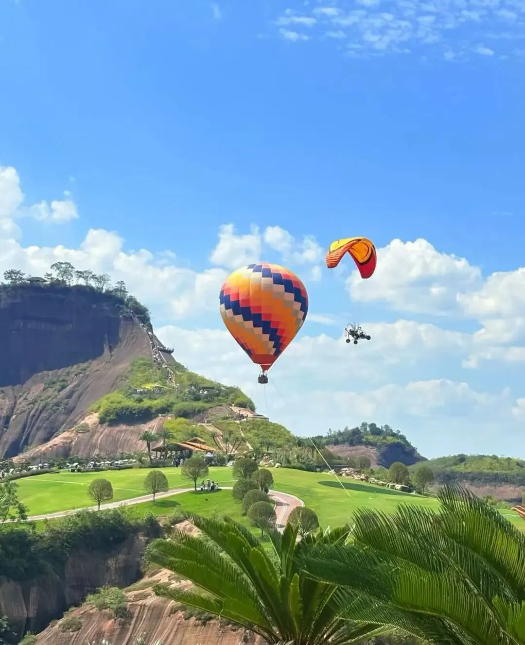 不用滤镜的天然油画 —— 高椅岭。丹霞红岩连绵起伏,碧绿洼地点缀其间,险峻与柔美共存,随手拍都是大片。
