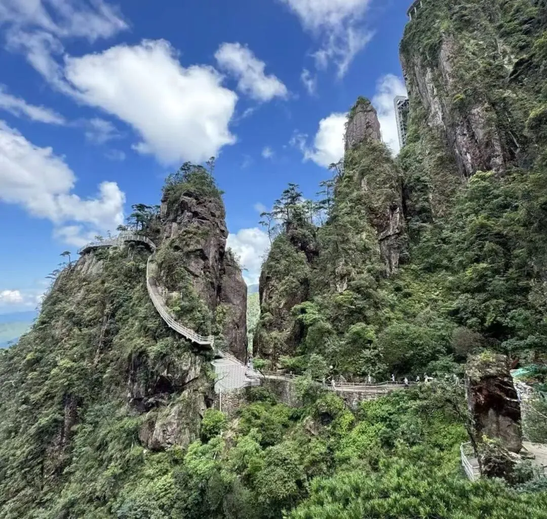 南岭之巅,莽山五指峰如神指擎天,刺破云海。乘 3.7 公里云端索道,飞越原始森林;踏 8 公里悬空栈道,漫步天际。金鞭神柱耸立,峡谷云雾翻涌,奇松怪石藏于仙境。