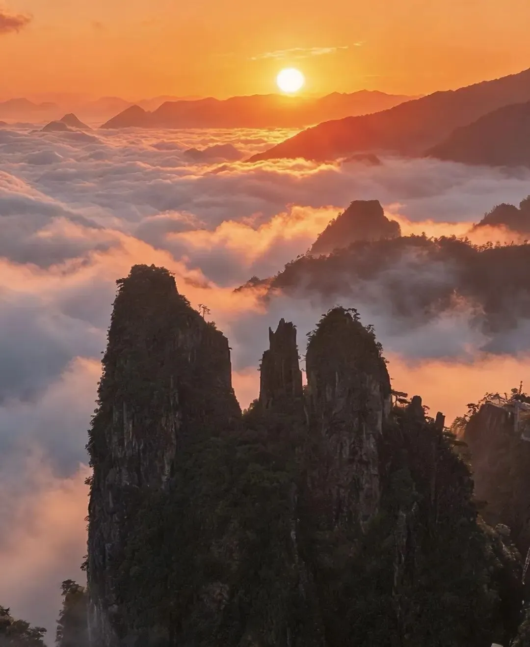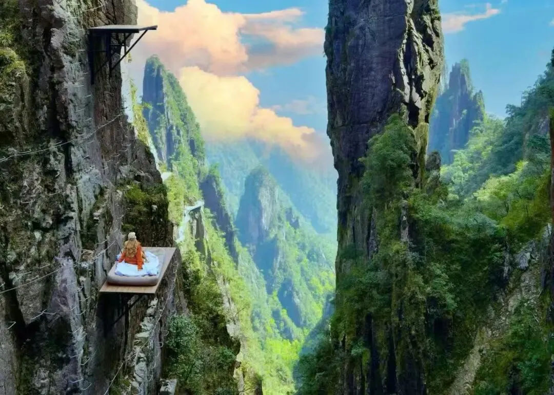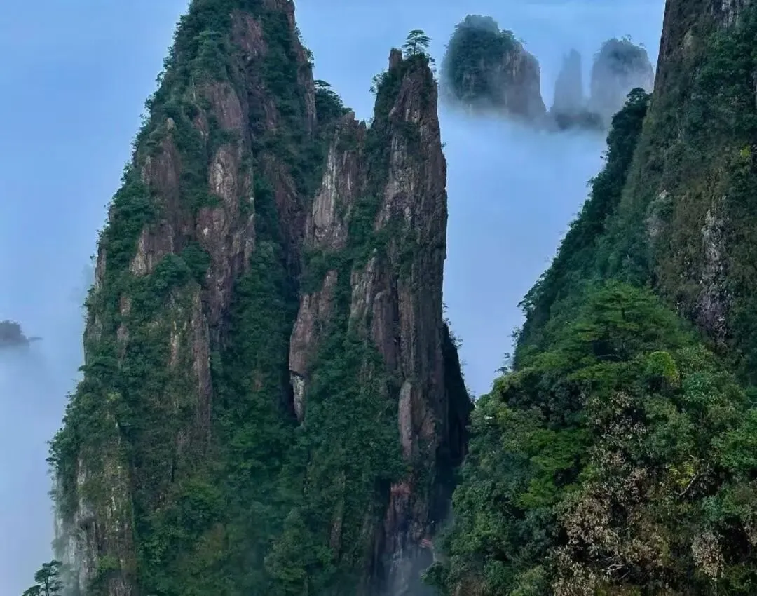 莽山五指峰壁立千仞,五峰如指直指云天。悬空栈道依山而建,云海翻涌如临仙境,奇峰、怪石、松涛与薄雾交织,一步一景,尽显南岭雄奇与空灵之美。