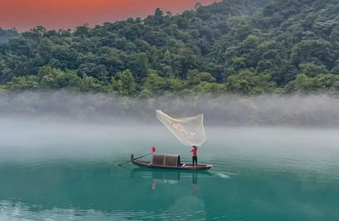 湖南郴州东江湖,一汪碧水藏尽湘南诗意。雾漫小东江如轻纱覆水,渔舟轻摇、撒网成画;万顷碧波澄澈见底,倒映青山流云,宛若人间仙境。人间天上一湖水,万千景象皆在此。