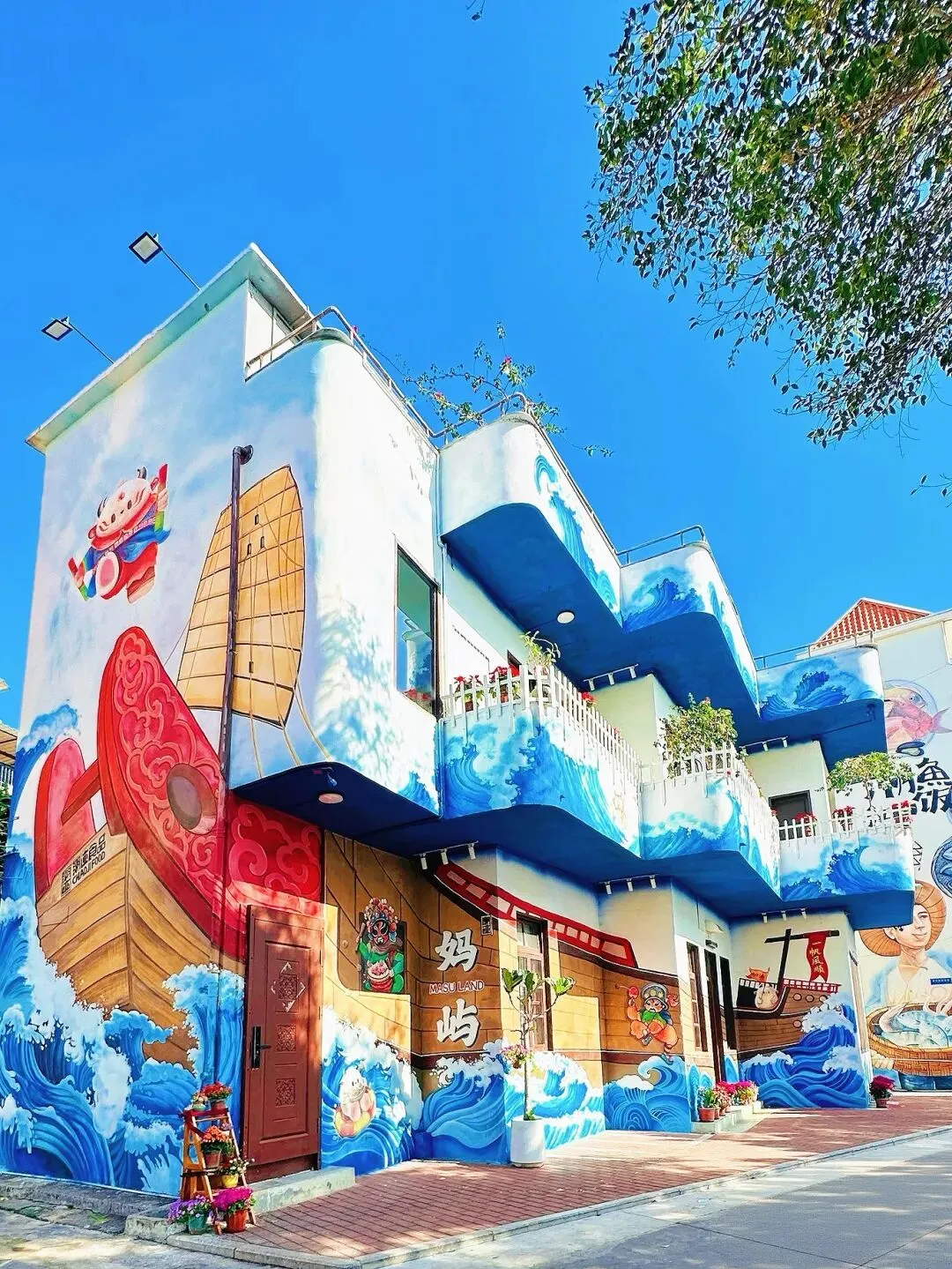 1️⃣上午:解锁妈屿岛,这座海边小渔村满墙都是童趣彩绘,带娃在沙滩上捡贝壳、看渔船,天后宫(妈祖庙)里的彩色装饰也能让娃好奇半天。