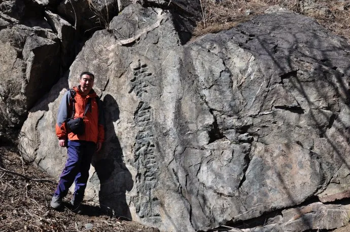 分段详解 沿下山步道返回主沟,途经徐邦达题字“龙枕石”(天然巨石上刻有行楷题跋)。石面平坦开阔,适合短暂休憩并拍摄人文与自然结合的纪念照。 安全警示 徒步安全须知: 深度探秘路线(全天文化沉浸) 为实现对北沟摩崖石刻的深度文化沉浸,本路线设计核心在于“考古式游览”体验,通过模拟专业考古工作者的勘察方法,引导游客近距离感知石刻的历史肌理。其中,石壁字迹辨识是核心环节——历经数百年风化,部分石刻表面已严重剥蚀,传统肉眼观察难以捕捉完整信息。此时可采用“湿润显形法”:使用随身携带的清水瓶,将少量水均匀喷洒在石壁表面(每次喷洒范围不超过手掌大小),水分浸润后,石刻文字与周围岩石的色差会短暂增强,原本模糊的笔画边缘得以凸显,便于辨识如“仰视见天”等关键题刻的细节特征。