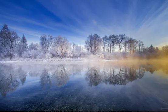 • 简介:这是位于甘河国家湿地公园西部的一段“不冻河”景观。由于地热影响,即使在零下40℃的极寒天气,河水也不会封冻,水汽蒸腾,在两岸树木上形成壮观的雾凇,景色宛如仙境,因此被称为“十里画廊”。