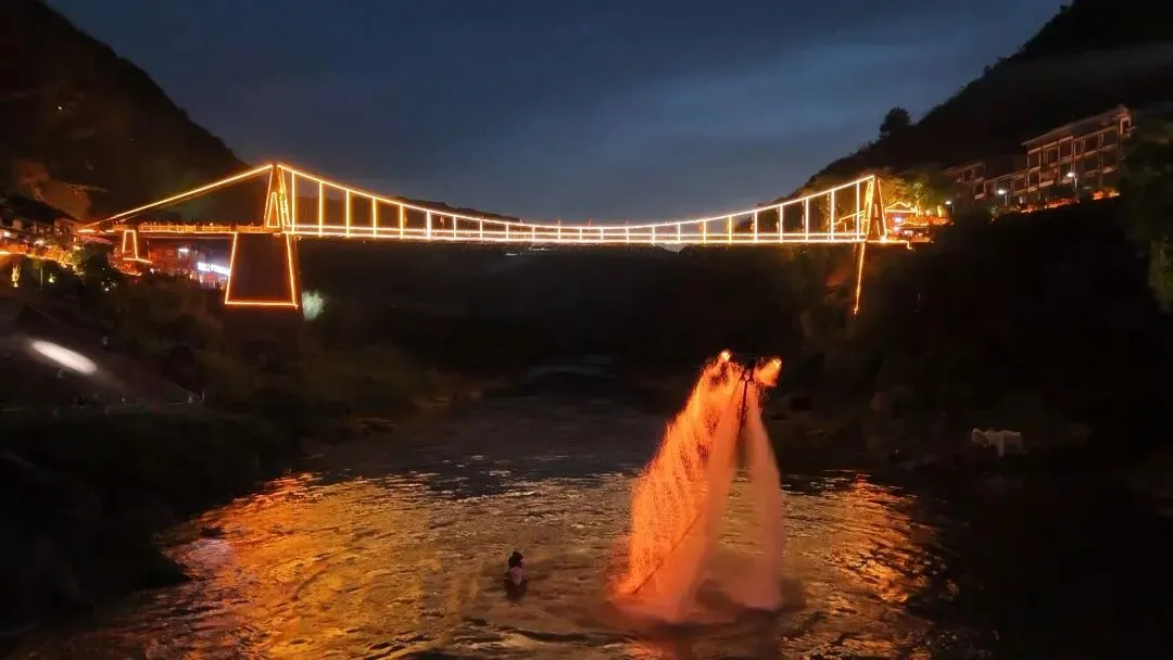 河景灯光秀:古镇与璀璨灯光交织,随手拍都是大片