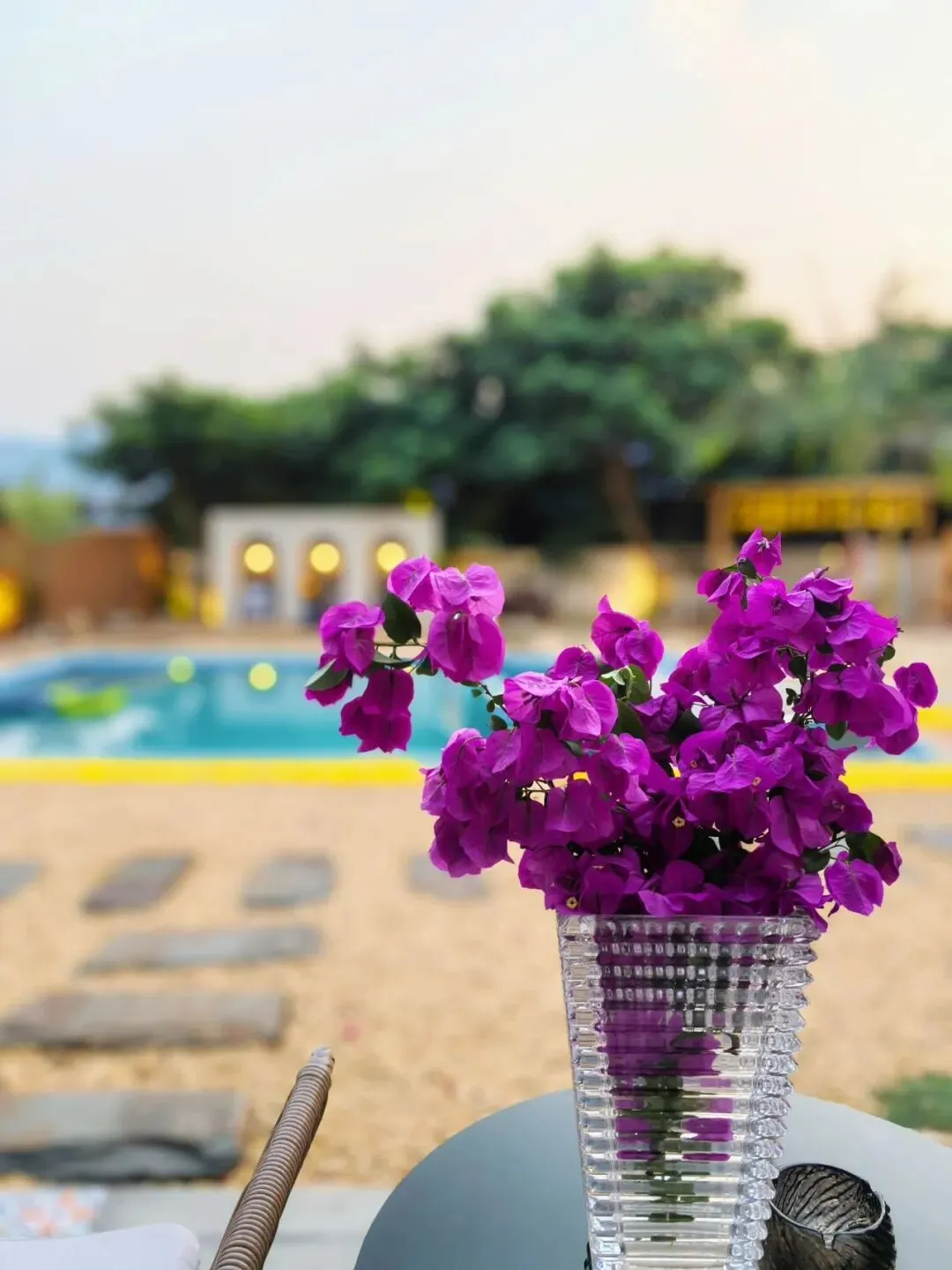 傍晚回民宿院子拍照,晚风赏花超惬意
