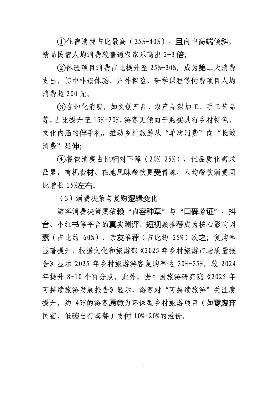 消费与客群结构升级,品质化、数字化、周边化成主流核心客群为中产家庭(40%-45%)、Z 世代青年(30%-35%)、研学团队(10%-15%),需求从观光转向深度体验、健康康养、社交打卡。线上预订占比超 80%,抖音、小红书种草转化占比近 30%;人均消费升至 800-1200 元,住宿与体验项目成主要支出,复购率达 30%-35%,近半数游客愿为环保项目支付溢价。