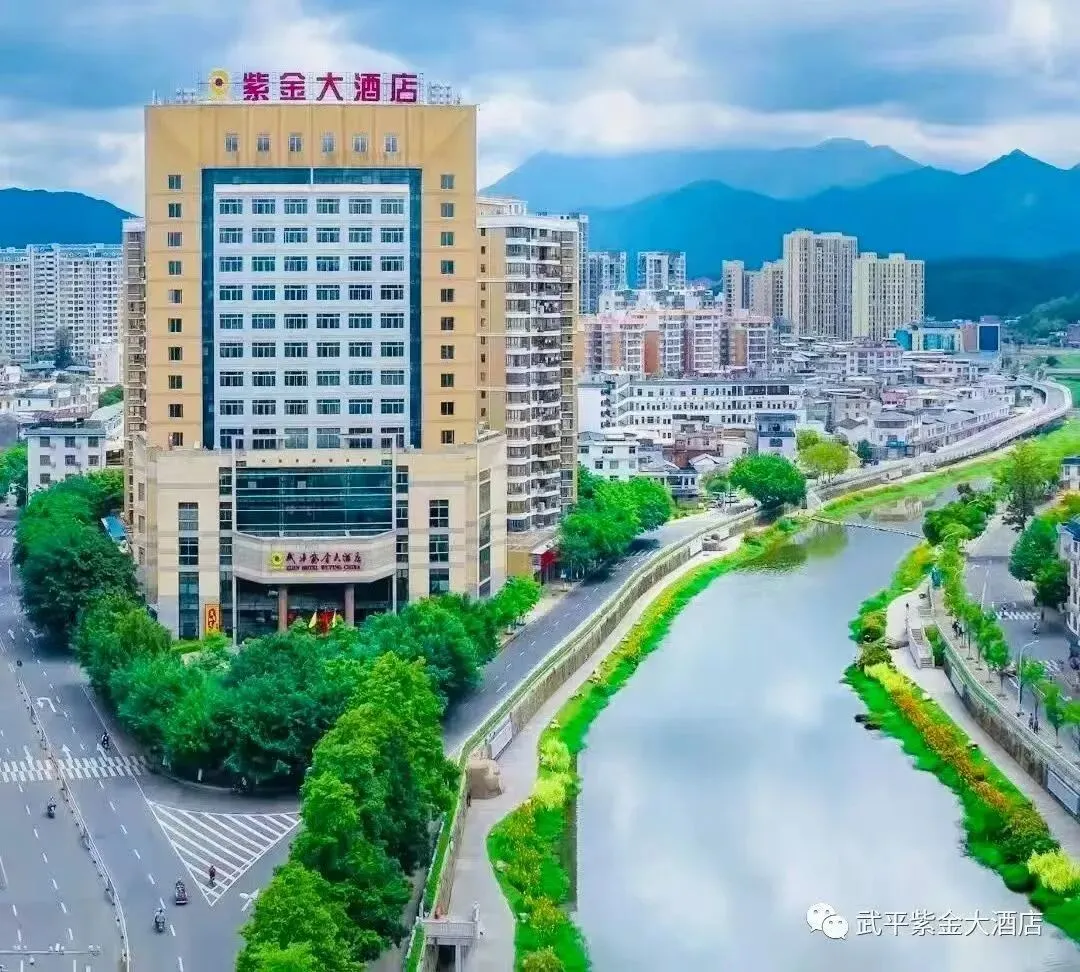 武平紫金大酒店隶属于福建紫金酒店管理有限公司,是紫金矿业集团股份有限公司旗下四星级酒店企业,座落于武平县城区繁华地段,交通便利,是武平县标志性建筑。酒店建筑外观别具特色,总建筑面积约20000平方米,拥有标准客房单间52间,标间51间,商务套房7间,行政套房1间,总共111间客房。另设有中餐厅及8间包厢、咖啡厅、多功能厅、各种大中小型会议室、行政接待楼层等。
