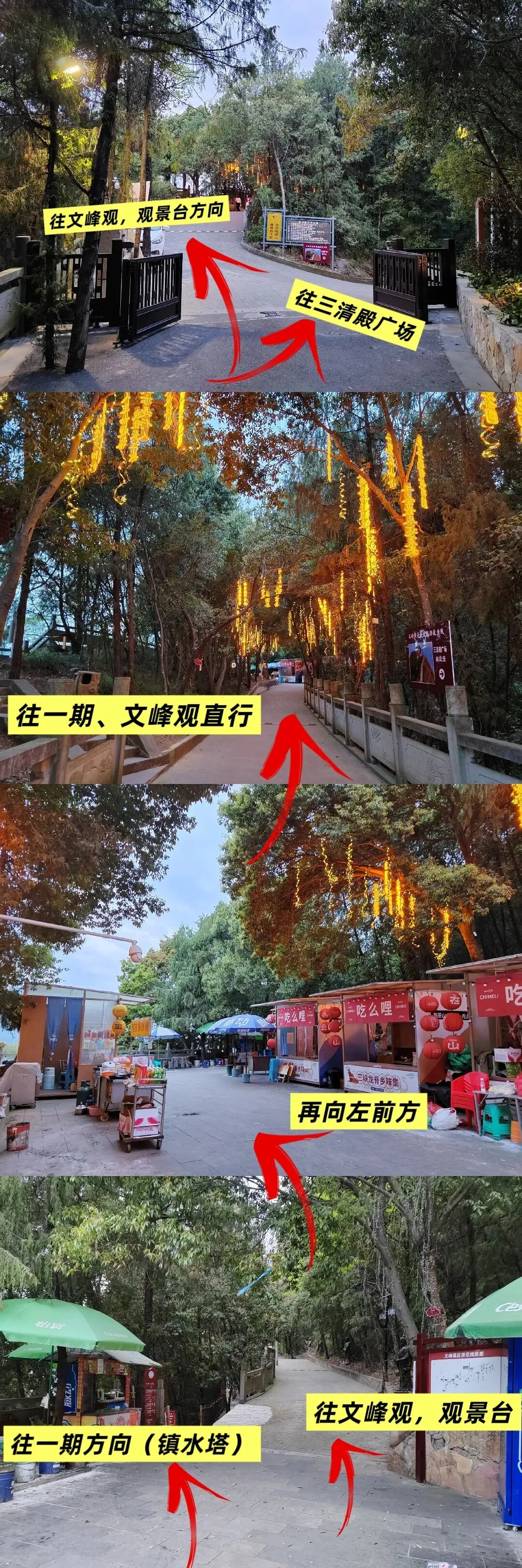 如您需要去往文峰观、观景台及一期(镇水塔)可按上图箭头指示前往。