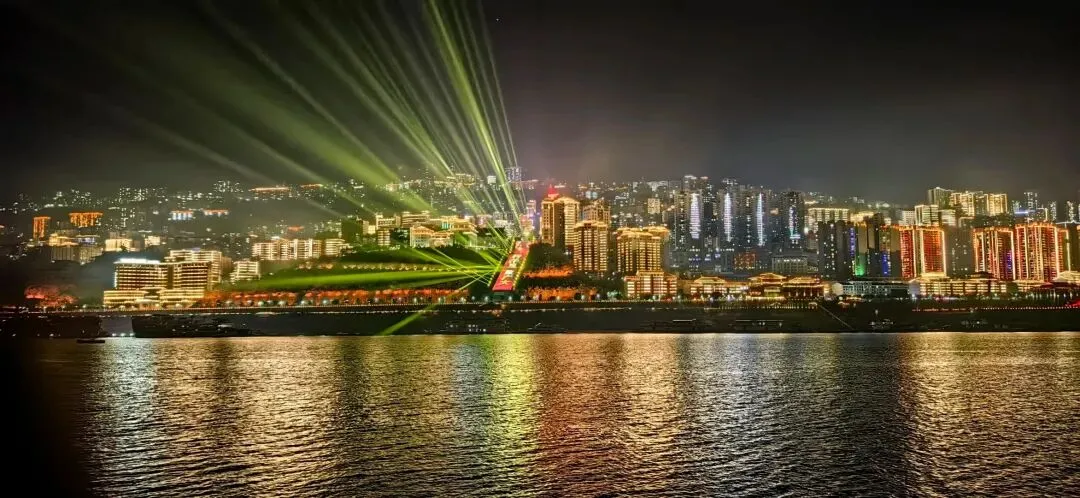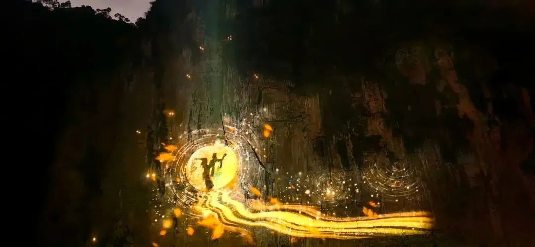 “三峡之光”情境夜游包含两个部分:“两江四岸”建筑集群创意光影和龙门峡夜游演绎。