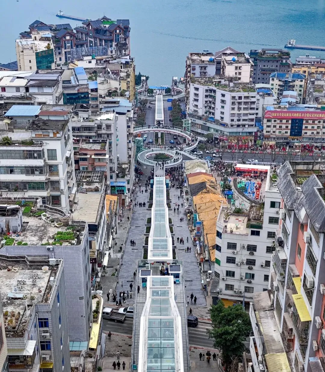 神女大扶梯是重庆市巫山县重点民生项目,沿神女大道布置,纵向总长度约905米,总提升高度达240余米(相当于80层楼高)。