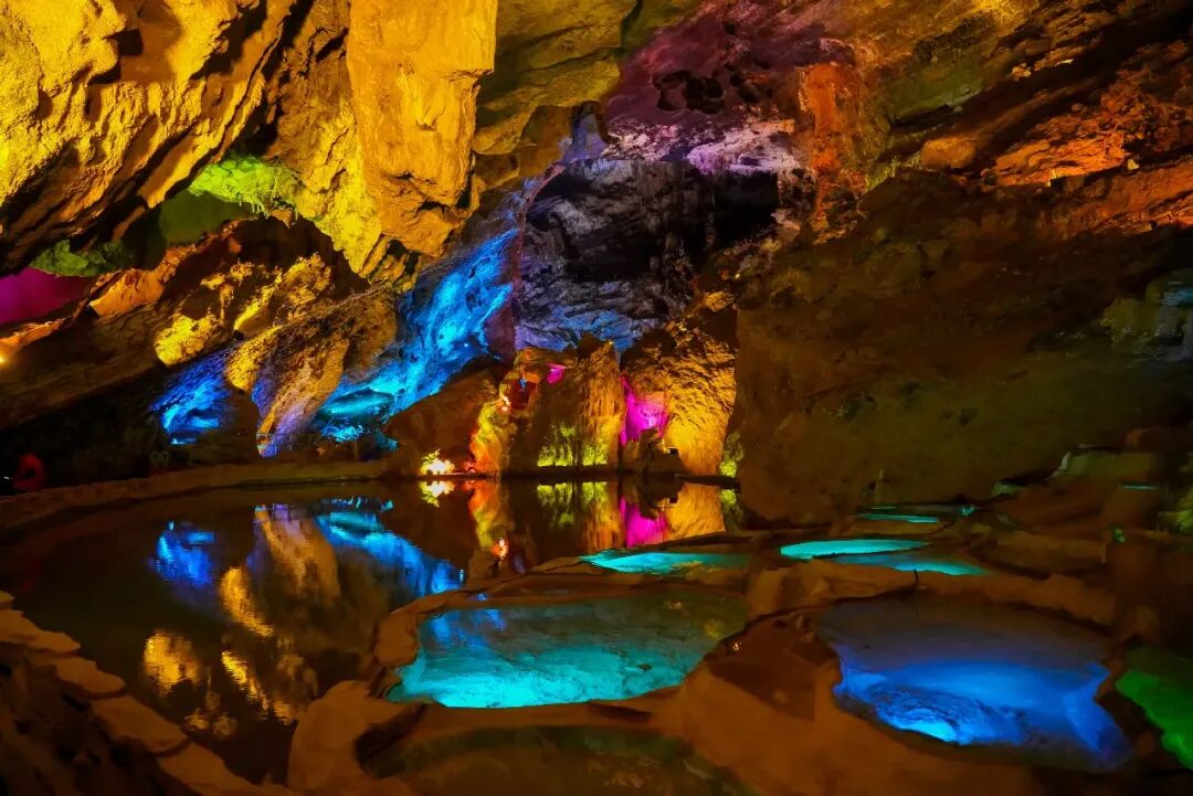 10:00-11:30 游览古郎洞:乘坐洞内观光车(往返15元/人,节省体力),观赏钟乳石、暗河、“洞中黄龙”等奇观,平缓无刺激,溶洞内灯光较暗,可携带小手电。