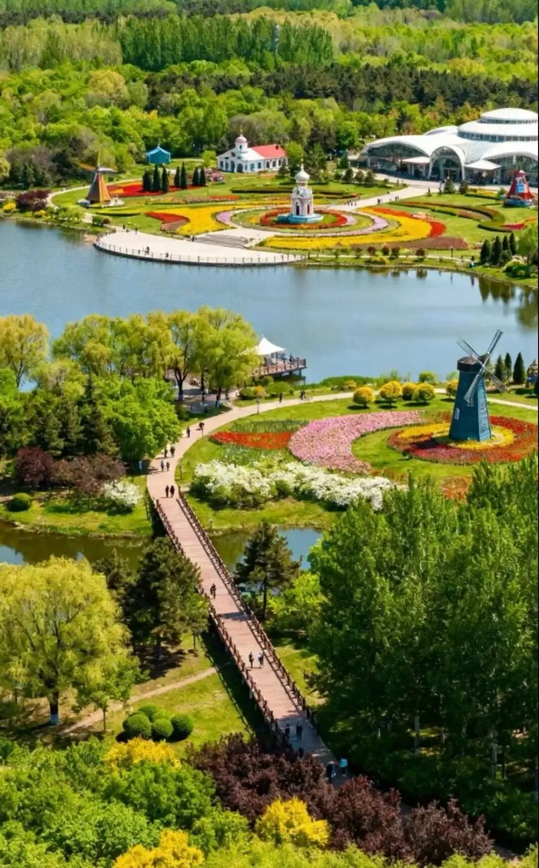 郁金香、杜鹃、梨花全开,有风车、湖泊、草坪,能野餐、放风筝、逛花朝市集。学生票25元,逛一天不腻。