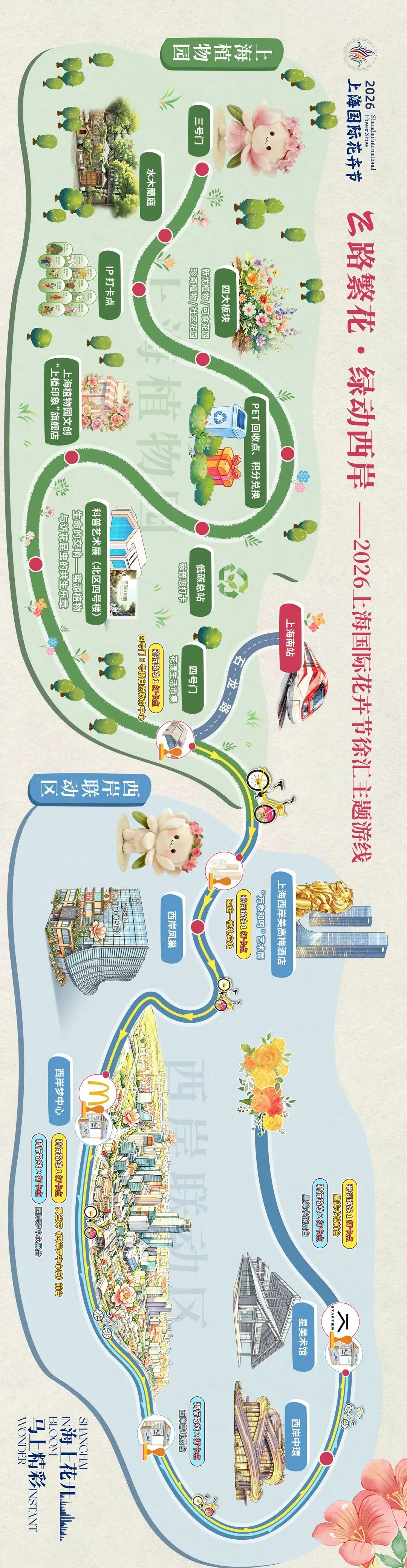 上海植物园 → 徐汇滨江全线(龙腾大道)→ 西岸美术馆 → 油罐艺术中心 → 龙华历史风貌区 → 返回植物园