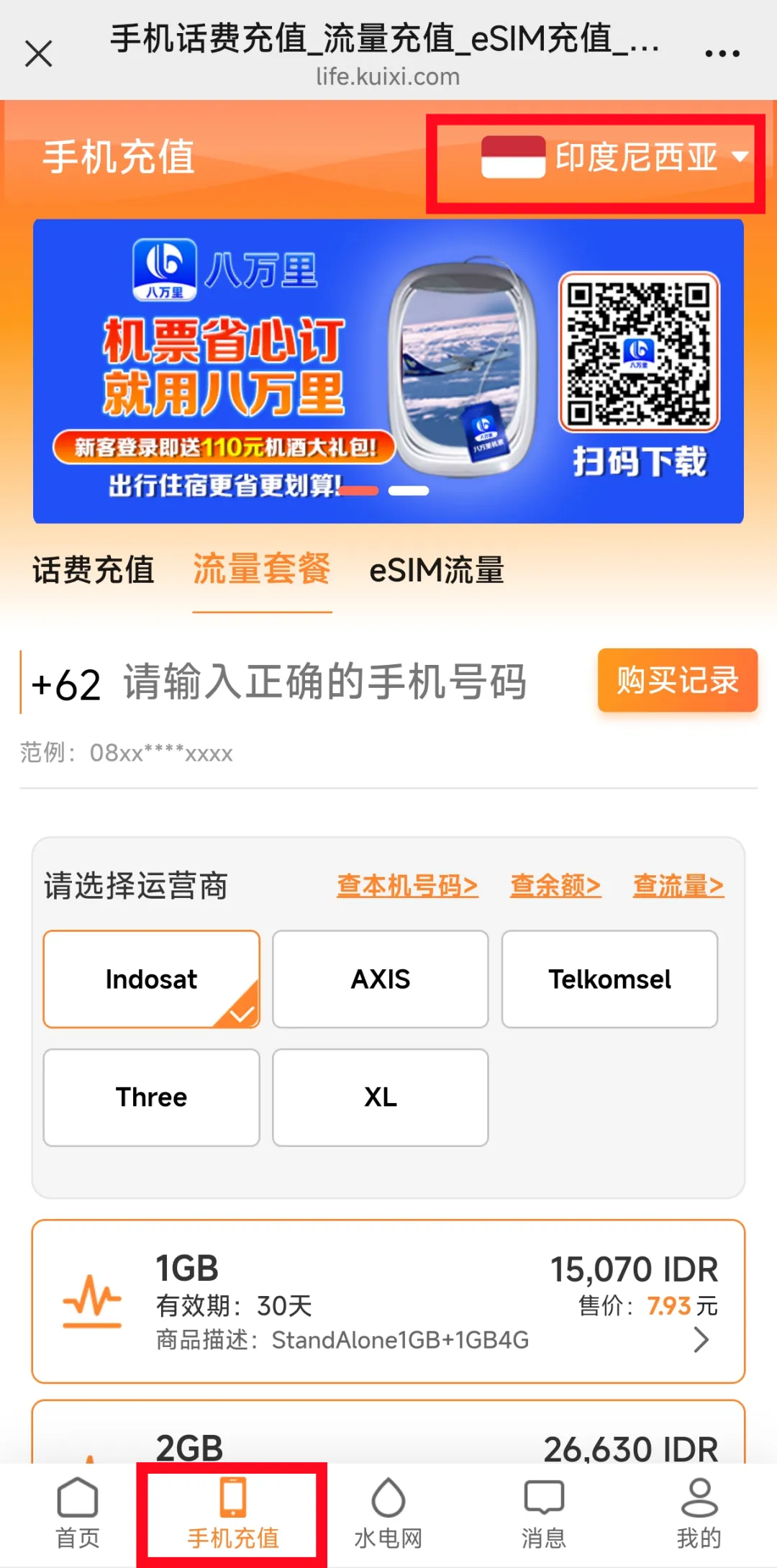 印尼生活通提供全球130+国家及地区手机话费流量充值服务,支持700多家运营商。
