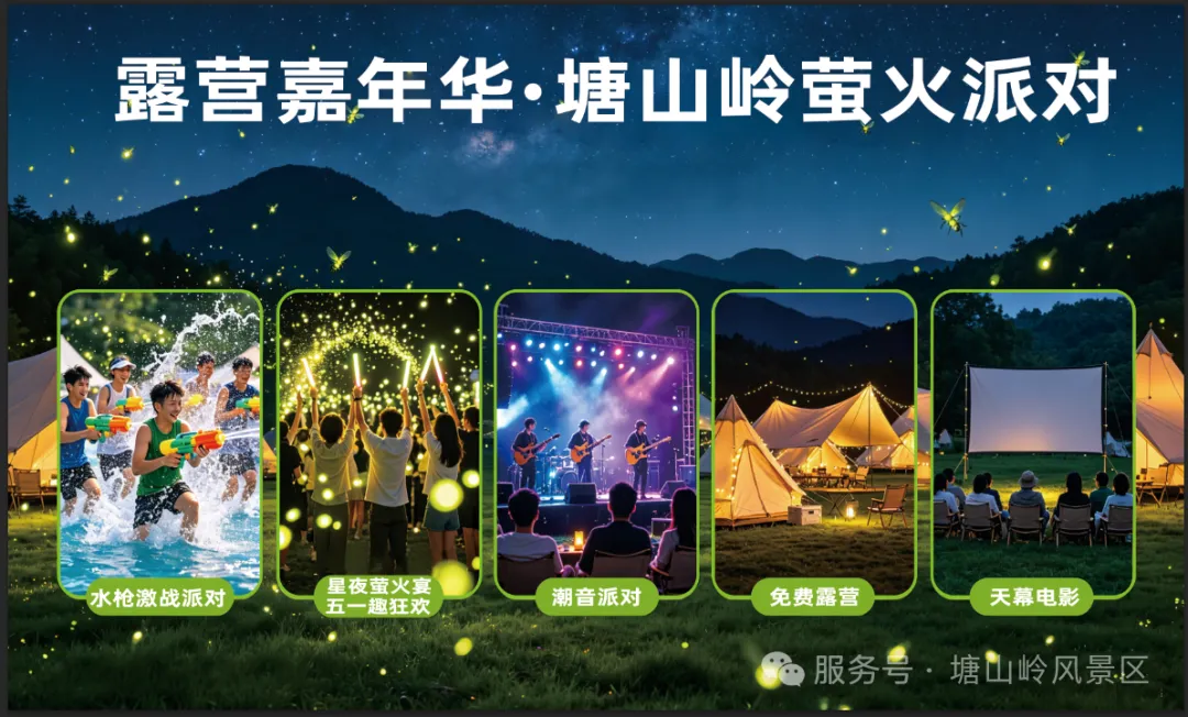 内容:水枪激战派对、星夜萤火、潮音派对、天幕电影、露营