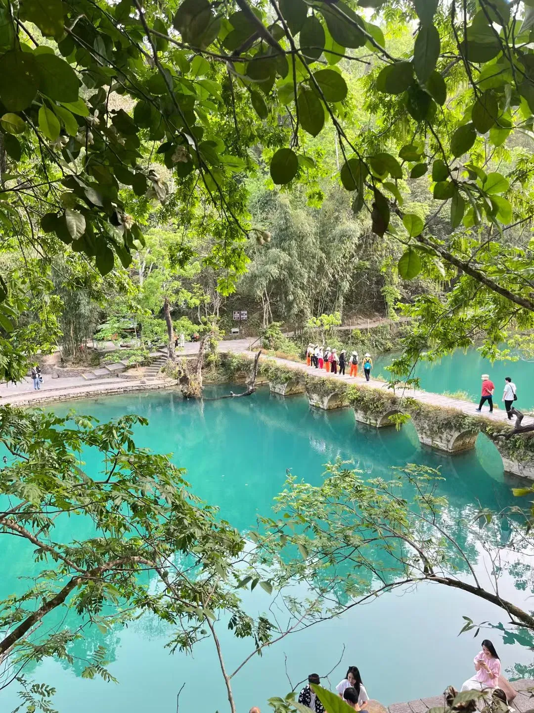 第二天直奔荔波小七孔,淡季从西门进,旺季从东门进,这样能避开人流。一进景区,卧龙潭的水蓝得像块宝石,让我忍不住一直按快门。拉雅瀑布水花扑面而来,夏天来这儿简直是降温神器,超清凉!
