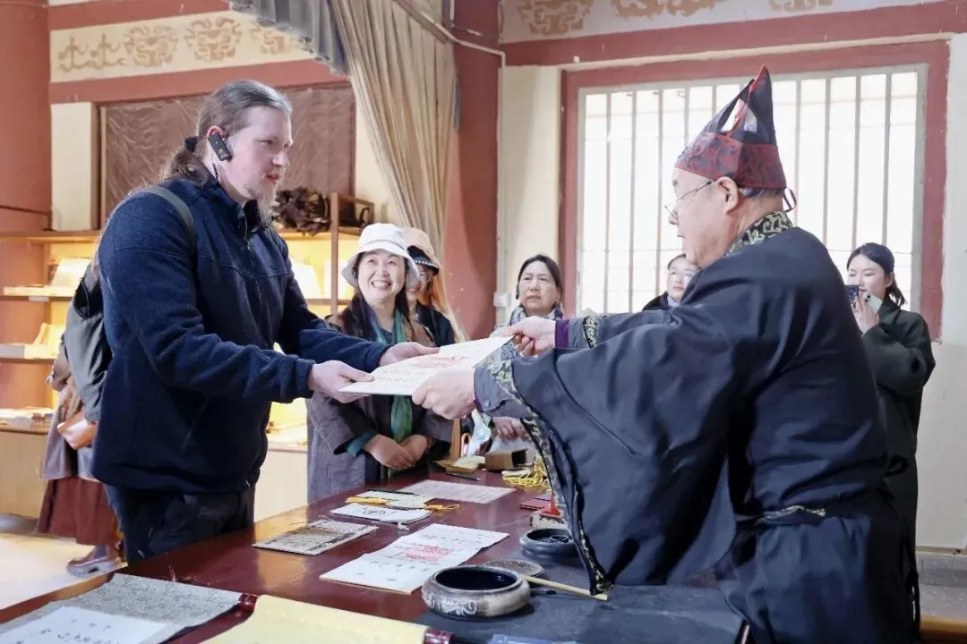 游客身着符合要求的汉服,到景区游客中心处现场核验,经工作人员确认无误后,即可免费领取祈福丝带与祈福牌。