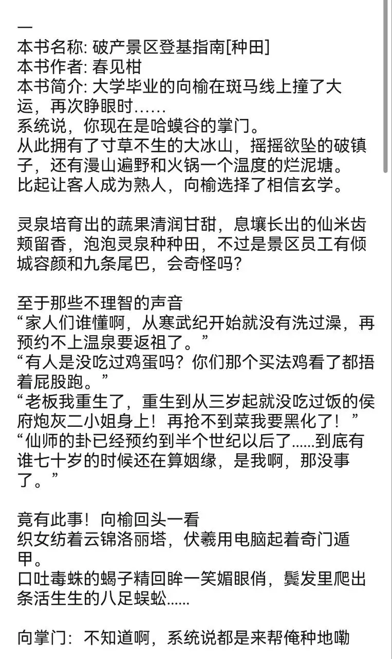 新完结脑洞超大基建种田文!《破产景区登基指南[种田]》作者:春见柑