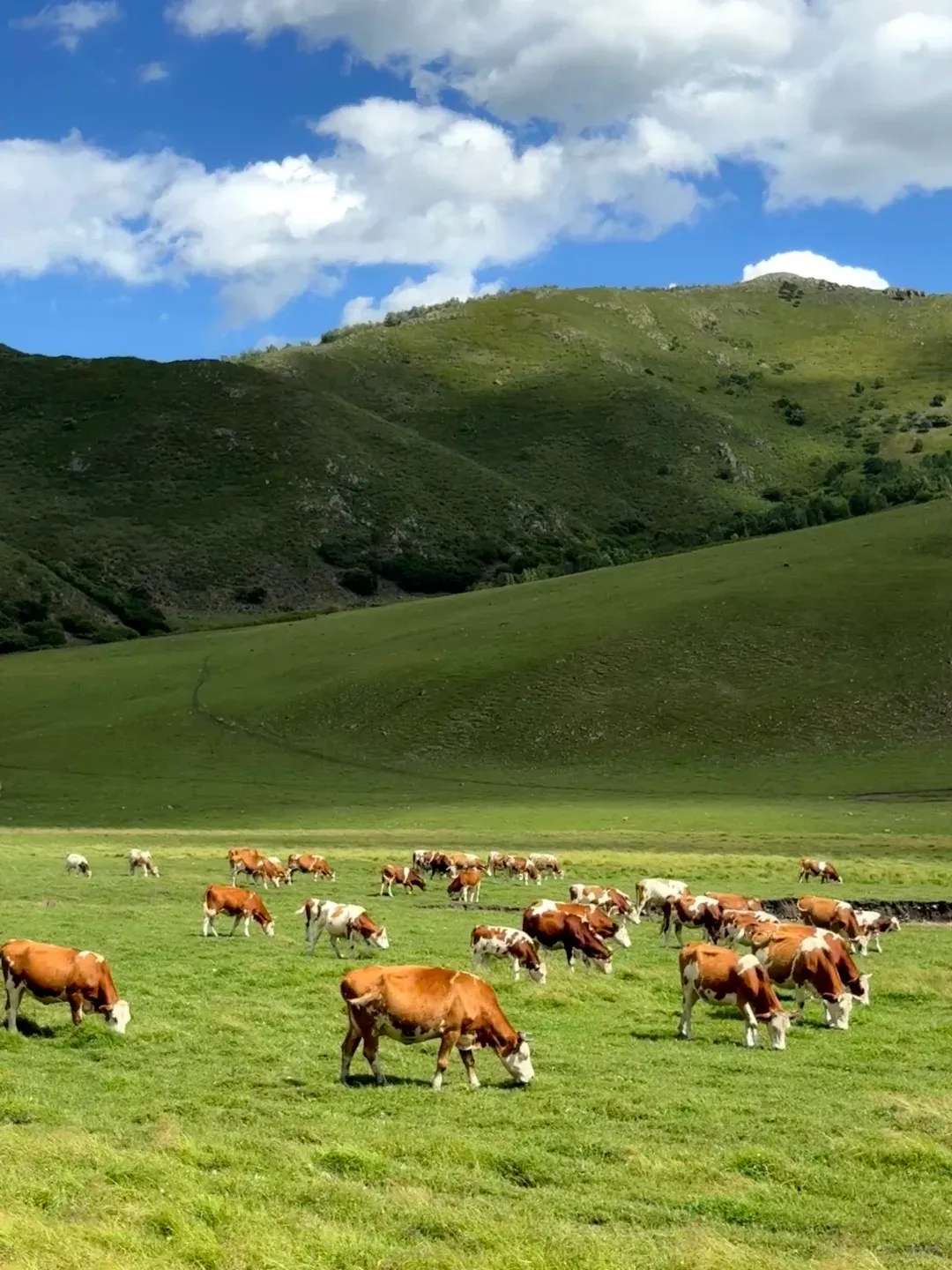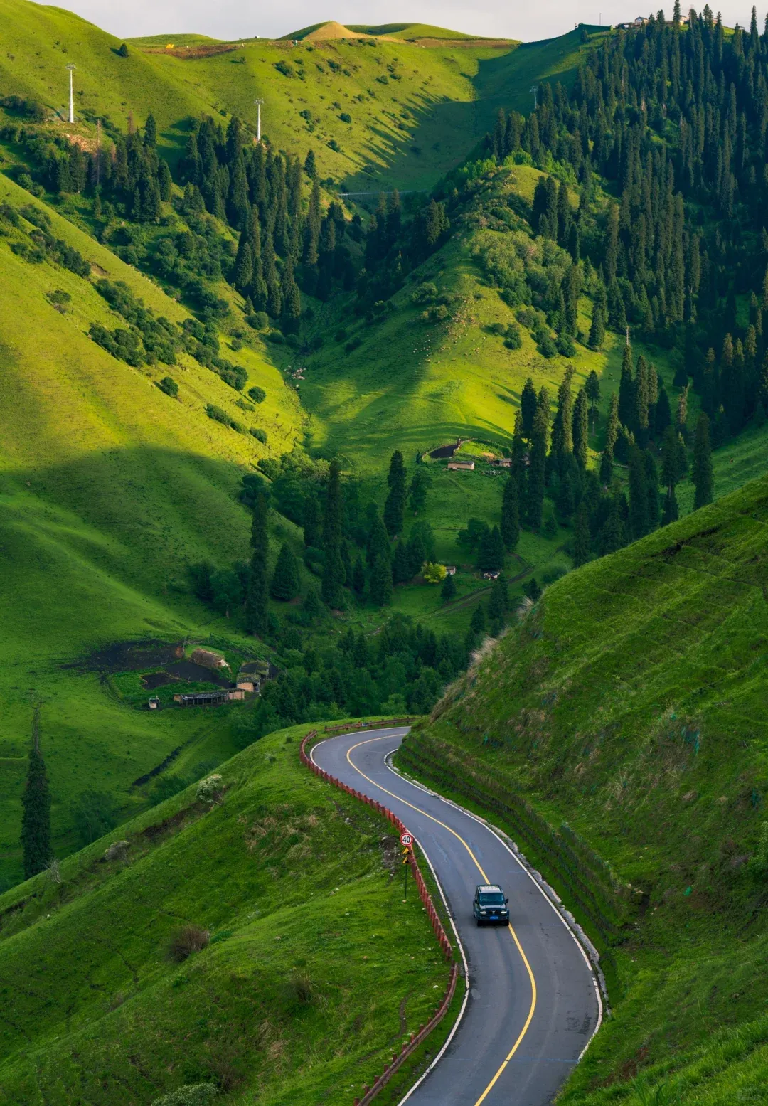 不同于河谷草原的柔美,空中草原是“悬浮在云端的壮阔”🌌 乘坐区间车盘山而上,海拔渐升,眼前豁然开朗,仿佛闯入了Windows桌面般的仙境。