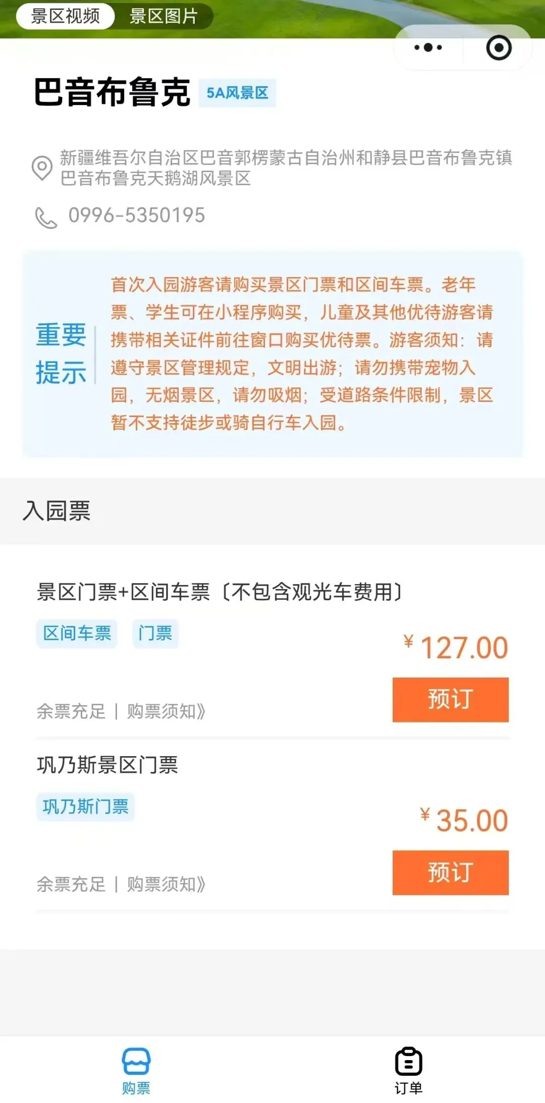 点击下方图片,进入“巴音布鲁克旅游”小程序,完成实名预约。