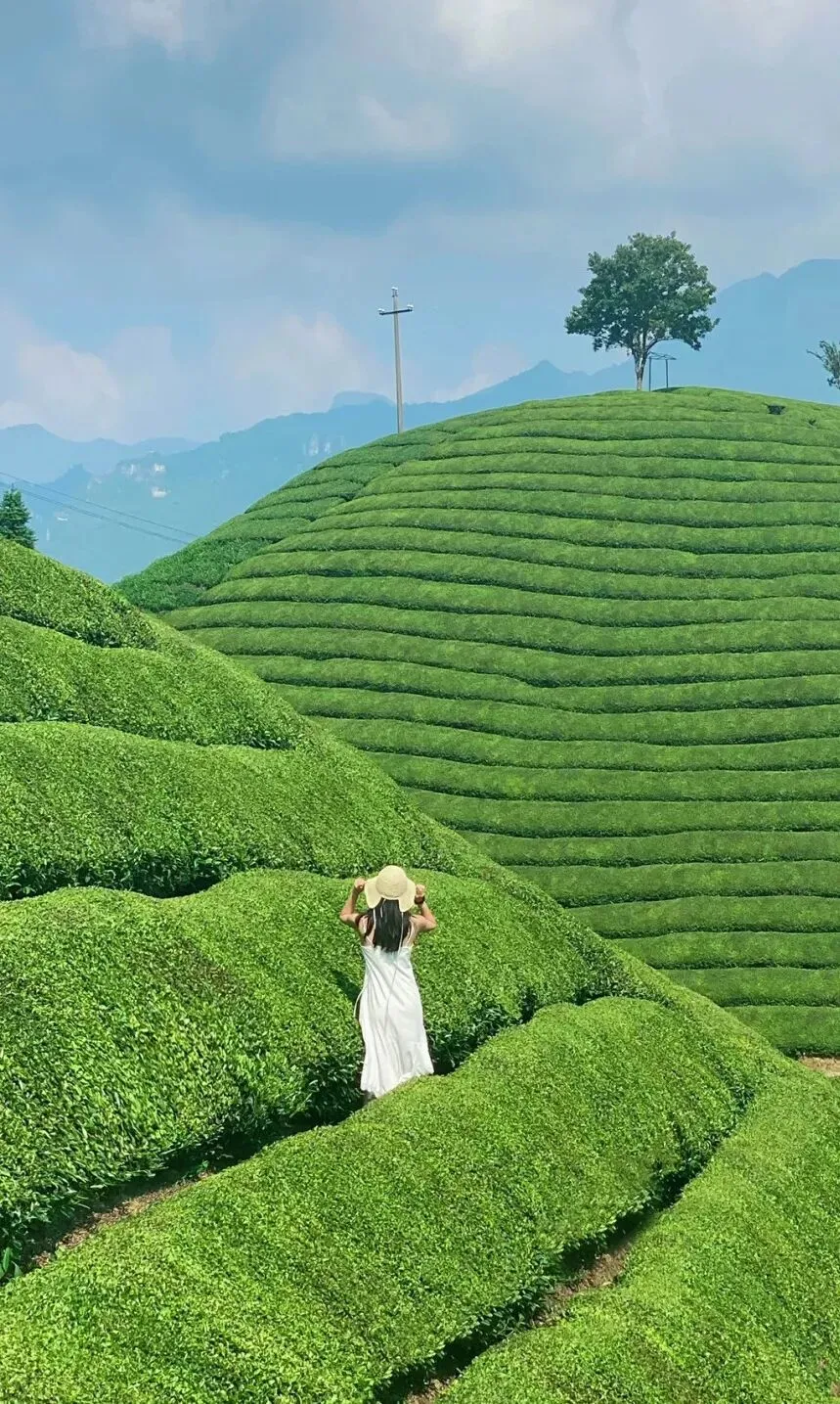 鹤峰木耳山,风景如画,茶园广袤,是我国三十座最美茶园之一,漫山遍野的绿色茶树,像是绿色的金字塔一样层层叠叠,轮廓分明,景色真是美得让人陶醉,融入茶园拍张美照,能把自己美哭,不信你看。