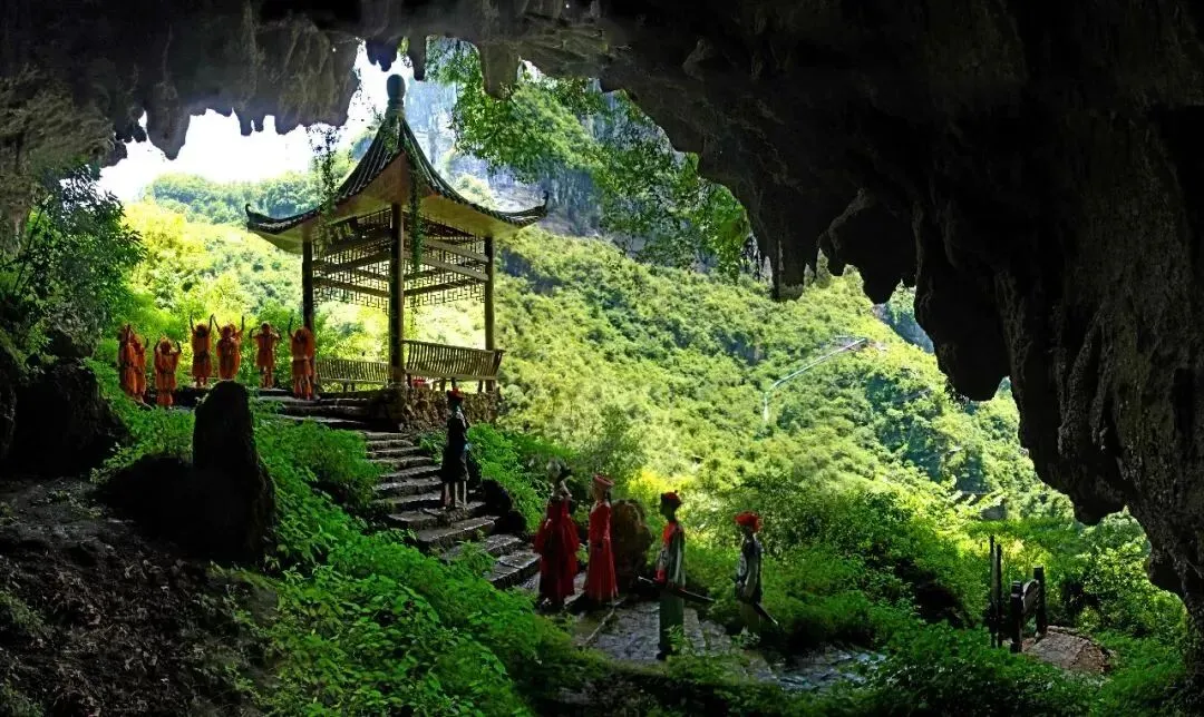 世界地质公园,国家5A级景区,被国家级权威刊物《中国国家地理》评为"中国最美的地方"、"中国最美六大旅游洞穴--震撼腾龙洞"。洞外卧龙吞江瀑布吼声如雷,气势磅礴。洞内有攒劲的大型的情景歌舞剧《夷水丽川》表演。