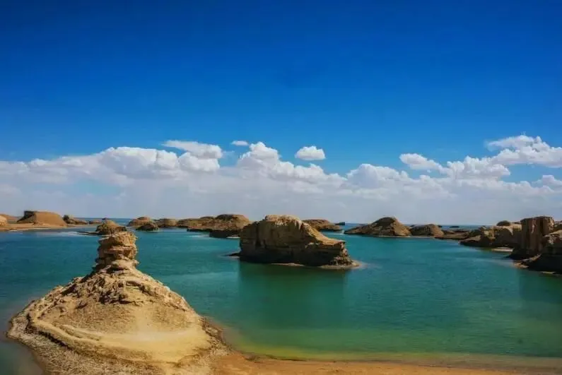 - 水上雅丹(3h):荒漠中的魔幻城堡,湖水湛蓝、雅丹奇特;日落金光最佳 。